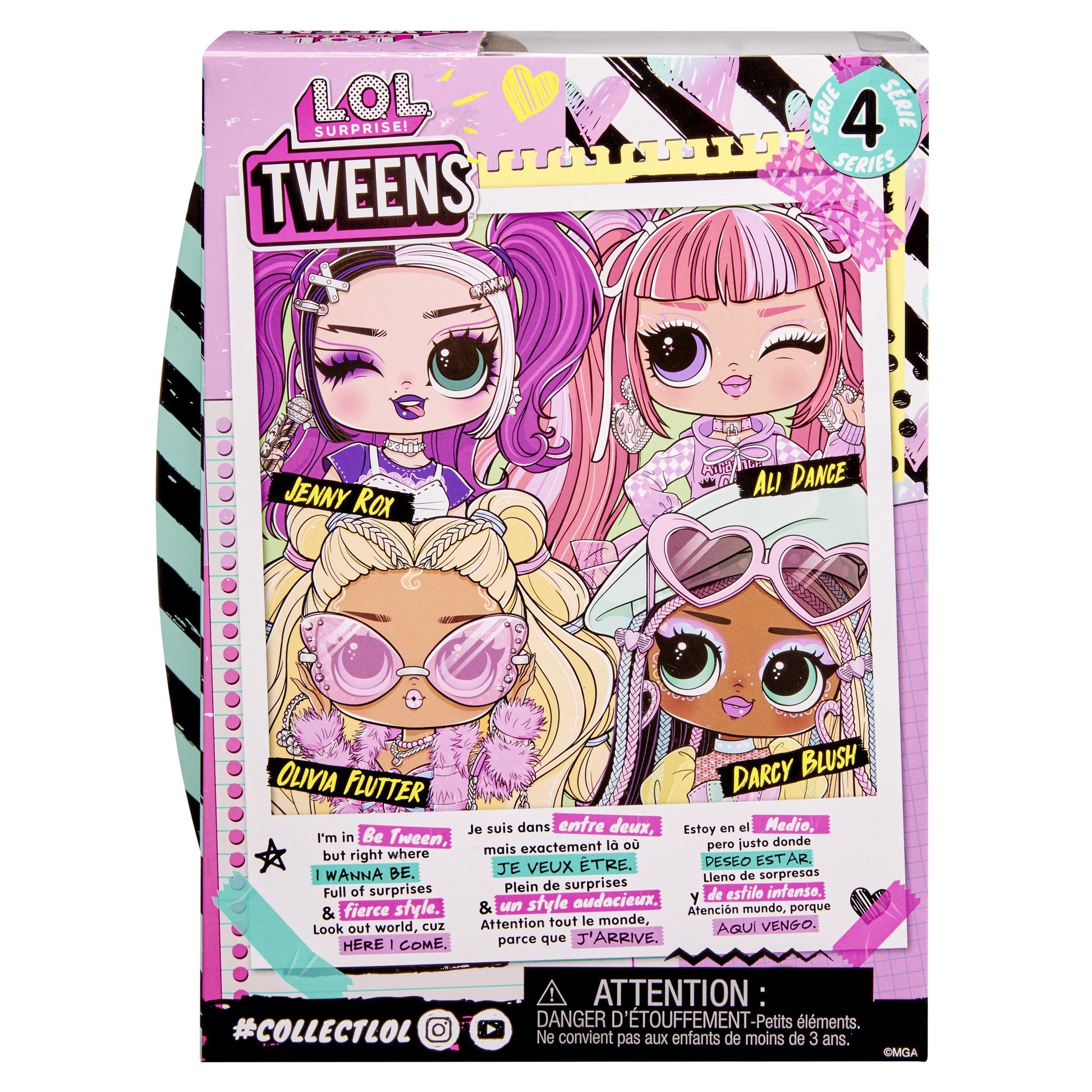 Collect all L.O.L. Surprise Tweens Series 4 fashion dolls: Jenny Rox, Ali Dance, Olivia Flutter, and Darcy Blush.
