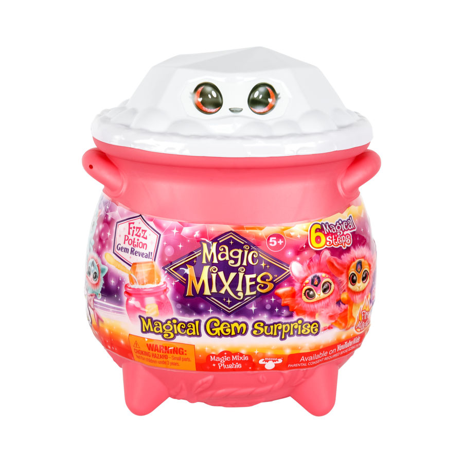 When your child opens the Gem they will discover a non-electronic fire Magic Mixie Plushie inside with a matching, color-changing fire Magic Ring! With 2 fire Mixie Plushies to create and collect, the Magic Mixies Magical Gem Surprise Cauldron will astound and surprise kids!