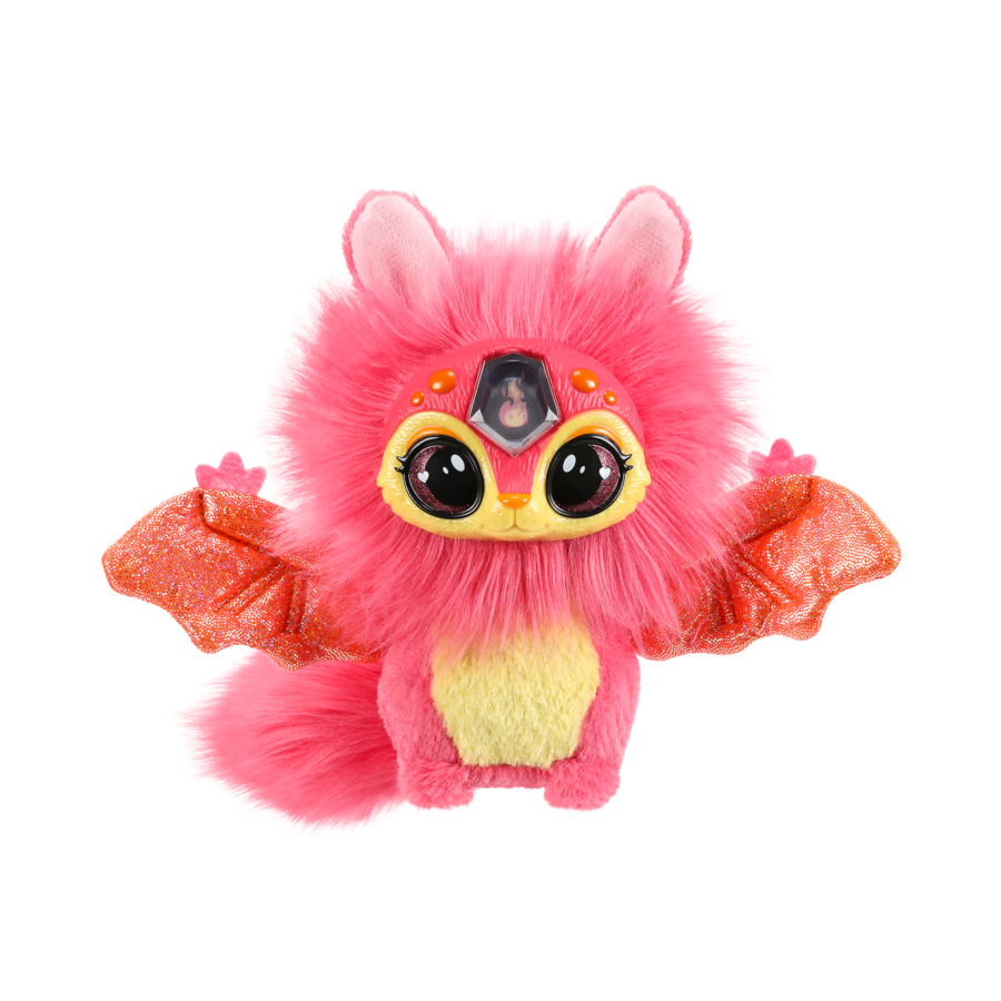 Say the magic words "Magicus Mixus" and see a truly magical reveal! As the cauldron is fizzing and bubbling, a crystal gem magically pops-up out of the bubbles, revealing a special fire Mixie Plushie and matching magic fire Ring!