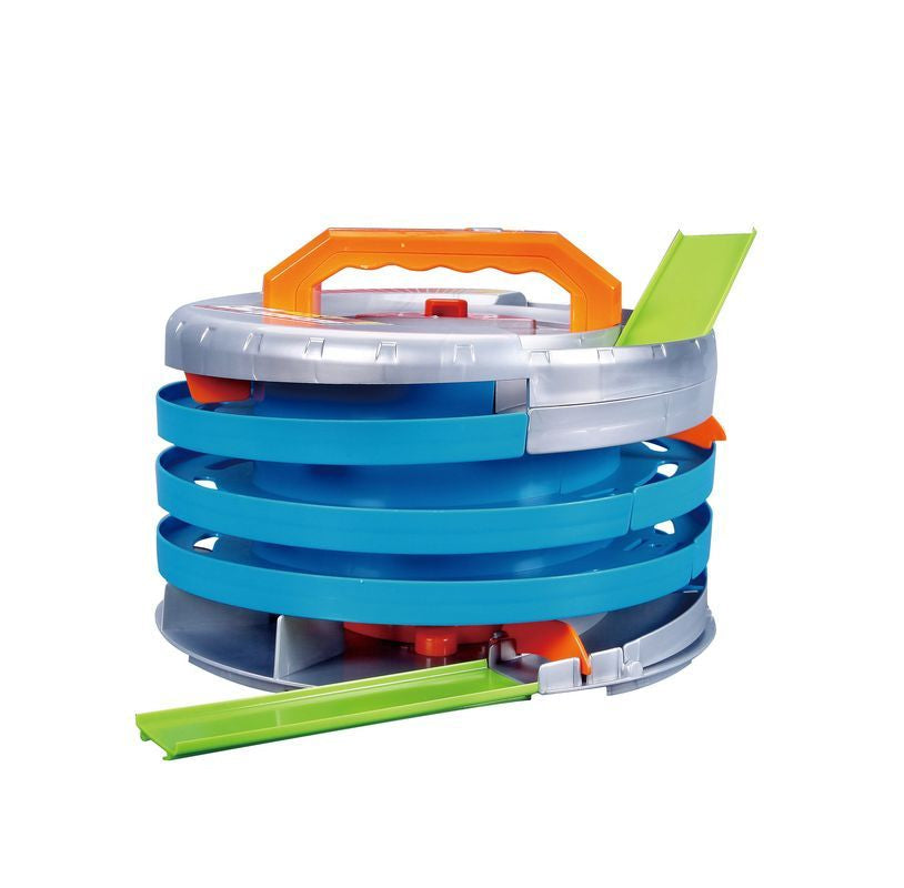 The Go Fast Garage is an awesome carry case that can hold up to 23 of your Fresh Metal or other 3" die-cast cars. Release the lock in the handle and the set expands to reveal a downhill gravity track. Easily pop out your favourite car from any part of the track! Open the gate to release all of the cars in sequence. Works as carry-case and track set Expands to 34cm tall. Includes 2 pieces of track and 2 vehicles. Please note as this is an assortment the style of vehicles included will vary. 3+