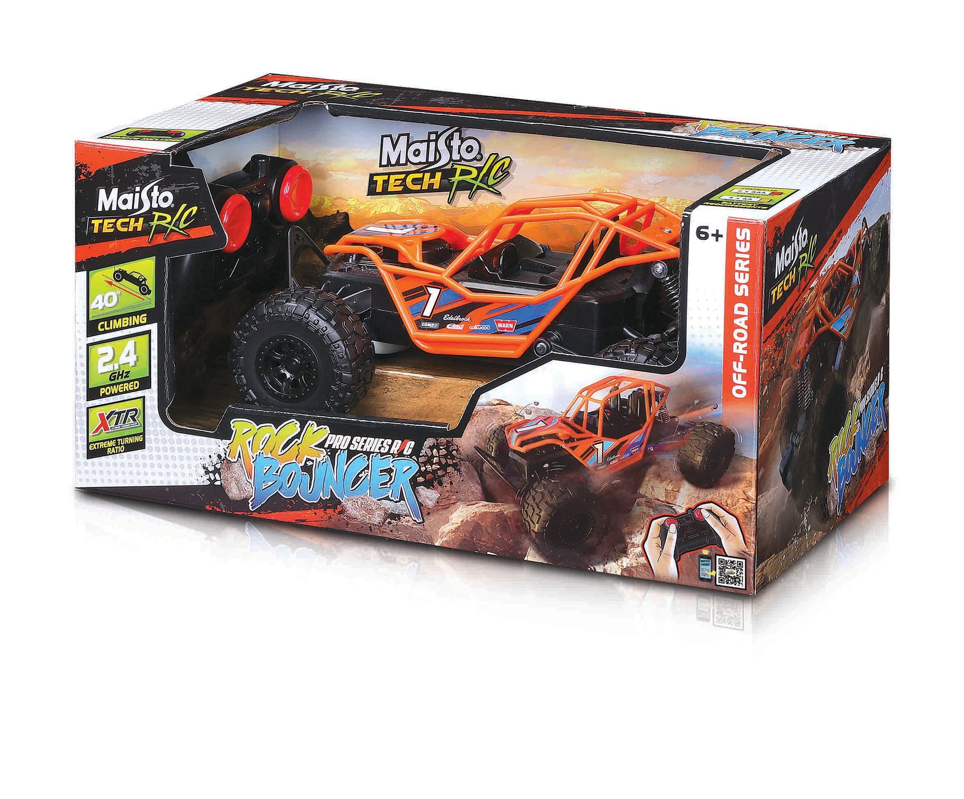 The Maisto Tech R/C Off-Road 8" Rock Bouncer is full function radio control fun. This smaller sized off-road radio control vehicle is loaded with great features. Big off road tires a dashboard style controller and a steering alignment adjustment control add to the value. 2.4GHz for top performance Big Off-Road Tires Steering alignment adjustment 115 ft. (35 meter) control range Up to 4 players can drive at one time and place.