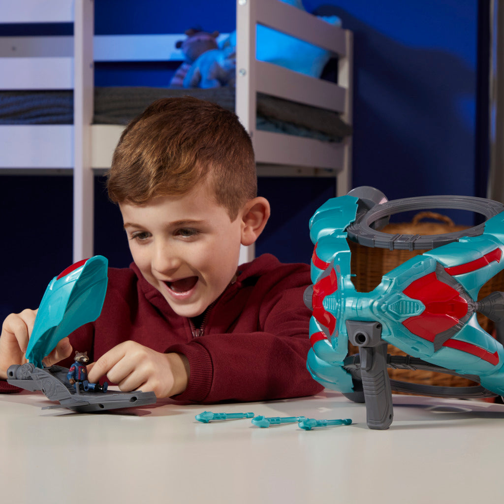 BLAST ACTION FEATURE: Ship includes a 2.25-inch-scale Marvel's Rocket figure and 3 projectiles for ultimate blasting action and galactic fun