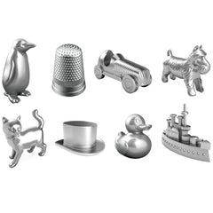 WHAT’S YOUR TOKEN?: Includes 8 Monopoly game tokens: Rubber Ducky, T-Rex, Penguin, Hazel, Scottie, Racecar, Hat, and Battleship