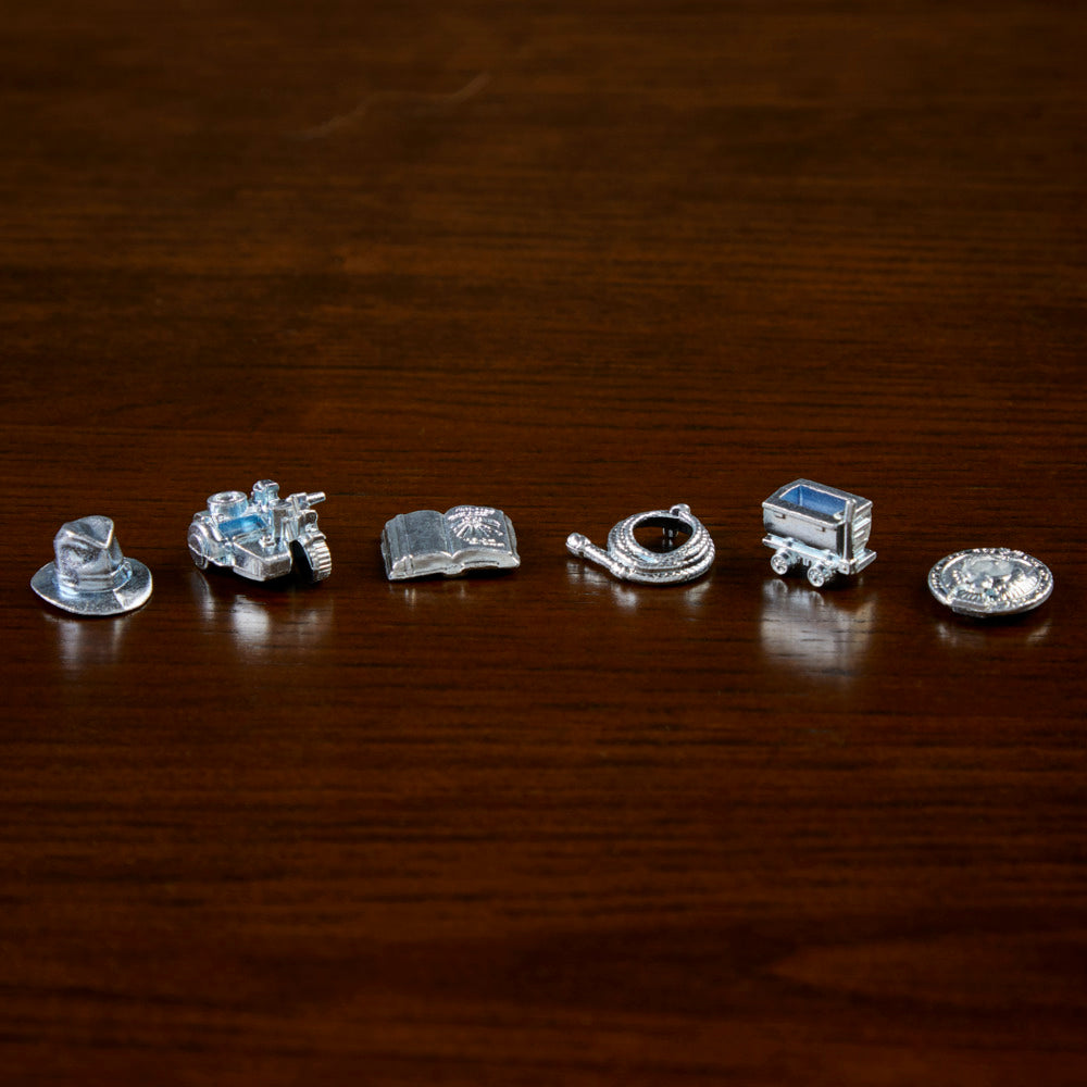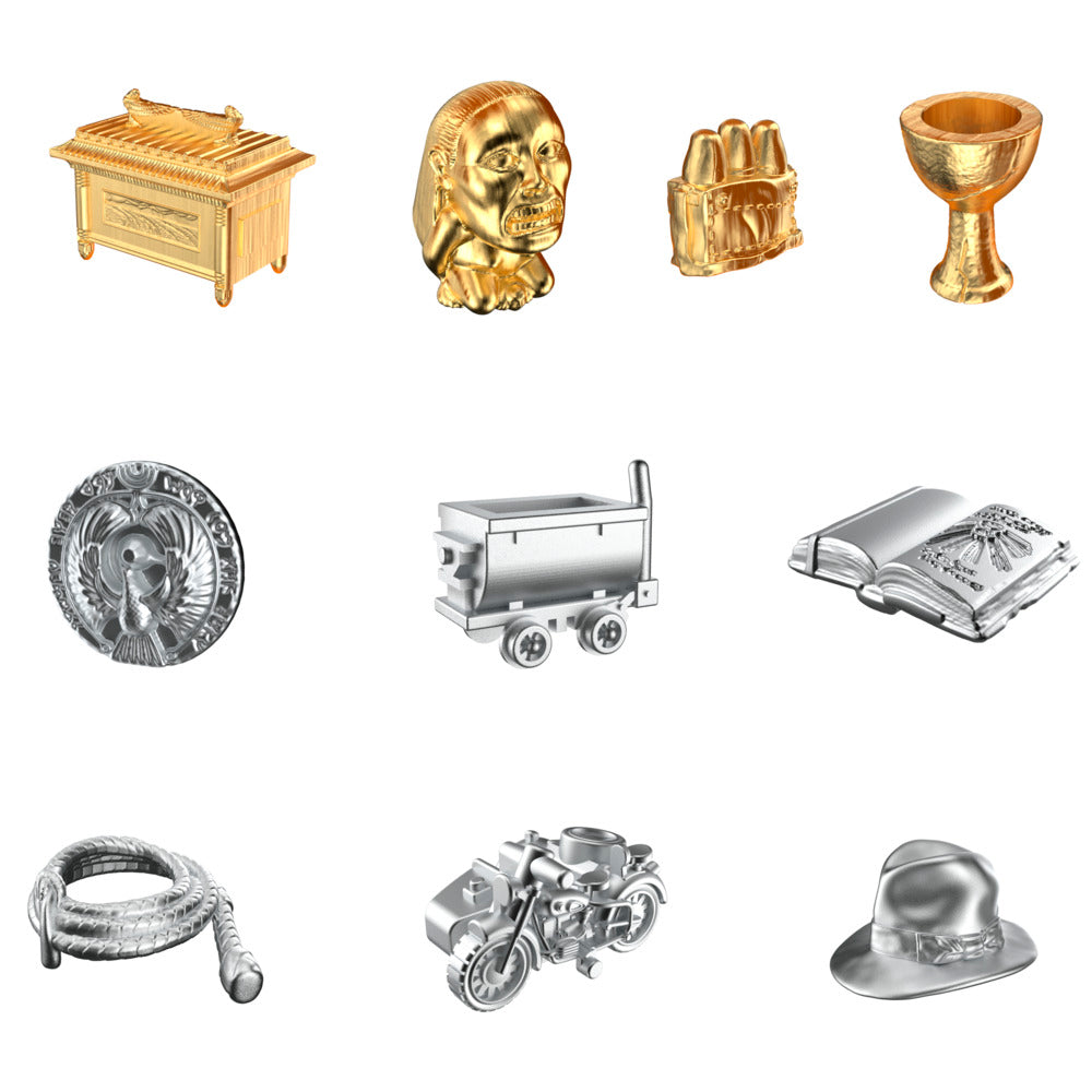 6 INDY-THEMED ZINC TOKENS: Choose from 6 playable zinc tokens representing iconic Indiana Jones items, including his lasso, hat, and motorbike