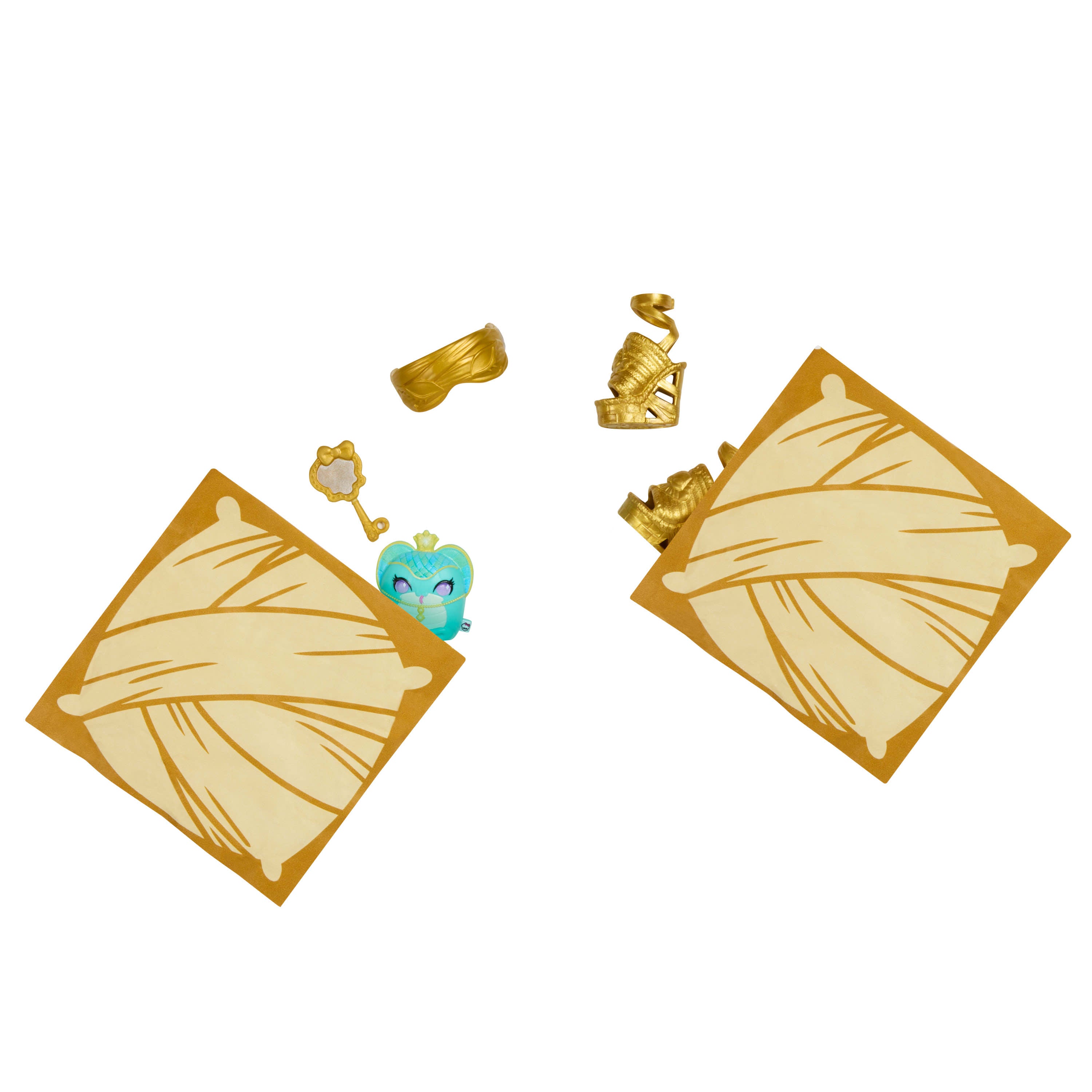The boo crew is under wraps! Monster High Buried Secrets dolls offer an eek-citing unboxing experience with a mystery doll and 5 cosy Creepover accessories. Undo the mummy wraps to discover which gore-geous ghoul lies inside the sarcophagus packaging -- will it be Cleo De Nile, Draculaura, Frankie Stein, or Clawdeen Wolf? The spooky surprise is half the fun! Then, open the bags inside the sarcophagus to reveal creepover accessories that set the scene for a spooky slumber party! Each sold separately, subject to availability. Characters may vary. Doll cannot stand alone. Colours and decorations may vary.