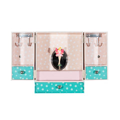 Display your precious jewels on the hanging hooks in the wings, or lay them delicately in the drawers.