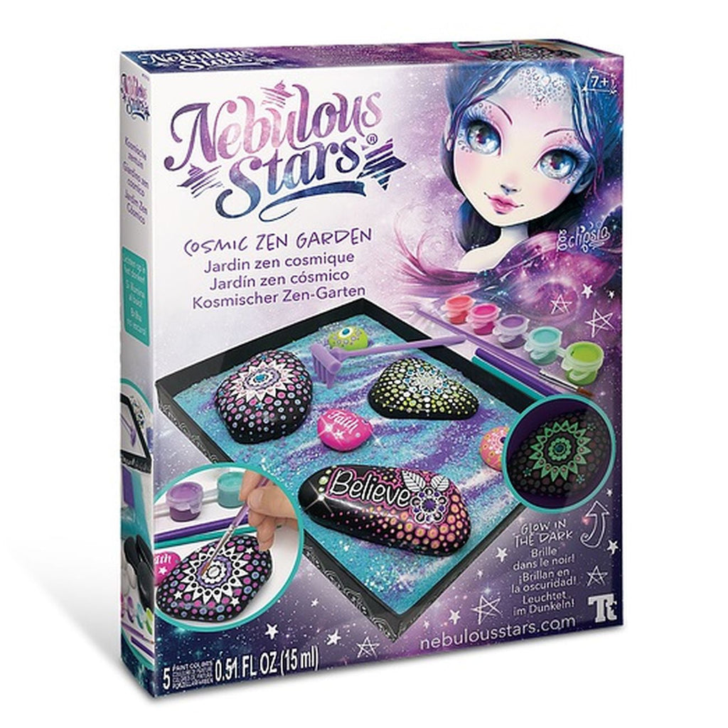 Here are 2 classic activities mixed into one original new concept combining stones painting with a Japanese Zen Garden. Decorate 3 stones with glow in the dark rub-on transfers and acrylic paint, then use the large tray, coloured sand and mini rake to create different galaxy effects every day.