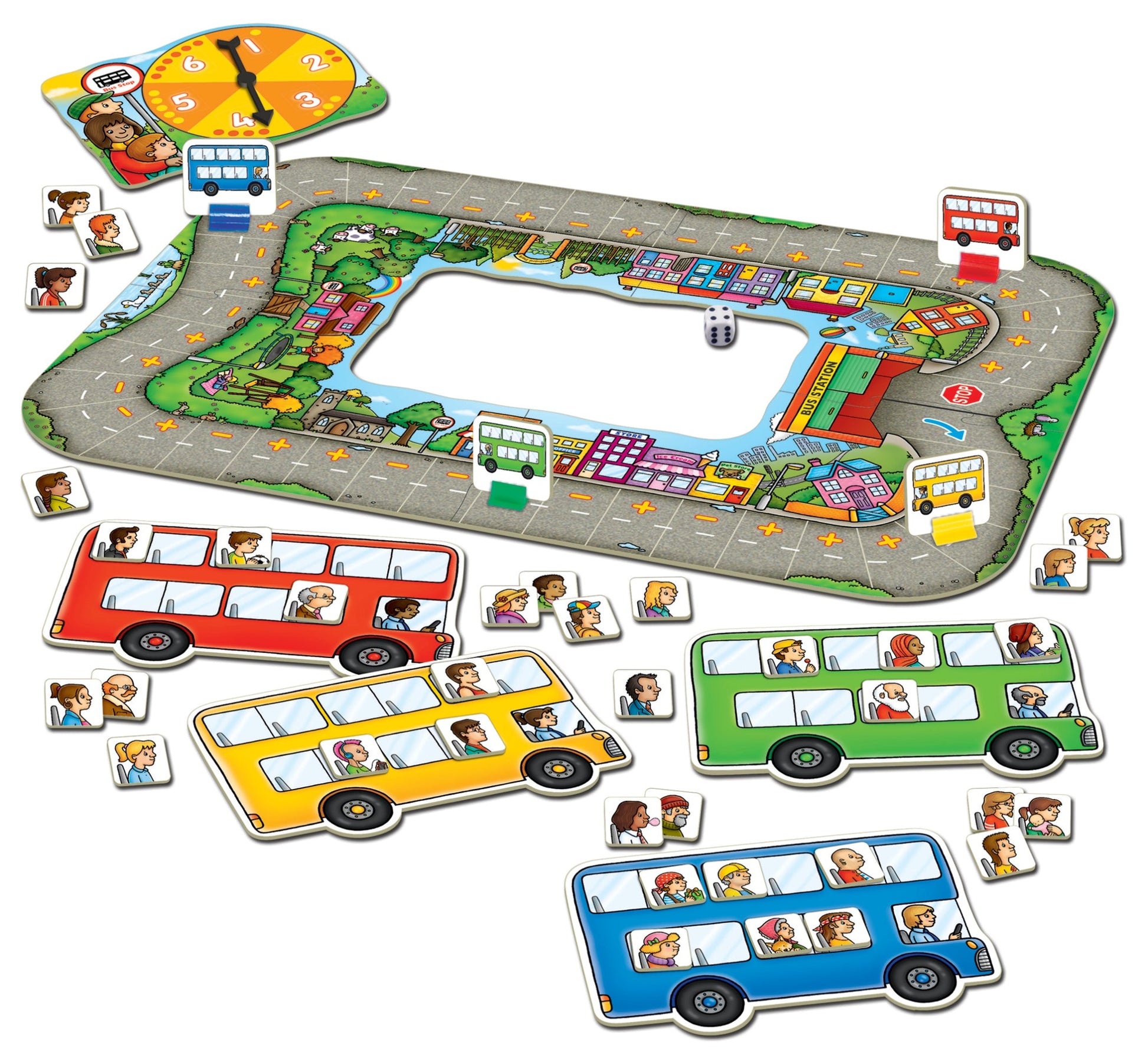 A fun addition and subtraction game. Take a counter and throw the two dice to move round the board counting passengers on and off your big bright bus. The winner is the player with the most passengers when their bus finally gets to the bus station. 2-4 players