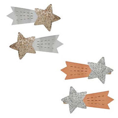 Pink Poppy Metallic Shooting Star Hairclips are available in two different colour schemes: A Sparkly Silver glitter or A Golden Glitter scheme.