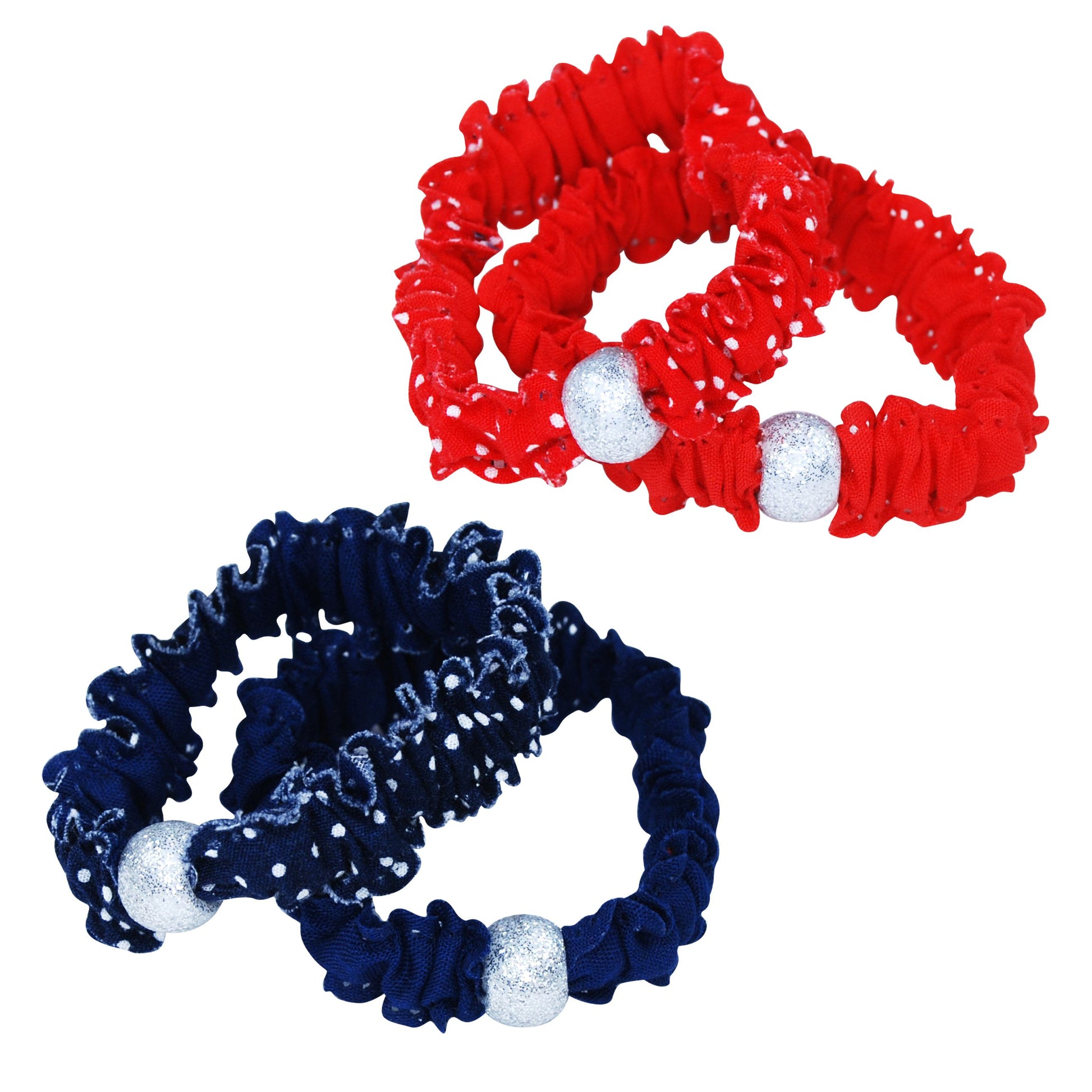 Sparkle Fashion Fair Scrunchies This set of 2 mini scrunchies come in plain and polka dot print and feature a shimmering silver bead. Perfect to match back with with a fashionable outfit or even her school uniform.