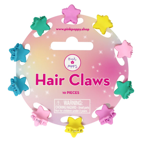 Pink Poppy's Star Hair Claw. These super cute star-shaped mini hair claws are in soft pastel colours. It is perfect for attaching ponytails or any type of hairstyle. Sure would become your little one's favourite collection!