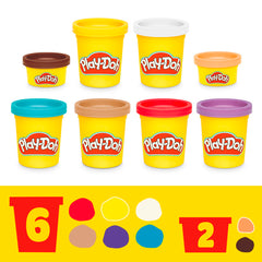 8 PLAY-DOH CANS: This Bluey Play-Doh set includes 1-ounce (28 g) cans of orange and brown and 2-ounce (57 g) cans of blue, purple, tan, white, yellow, and red. Contains wheat