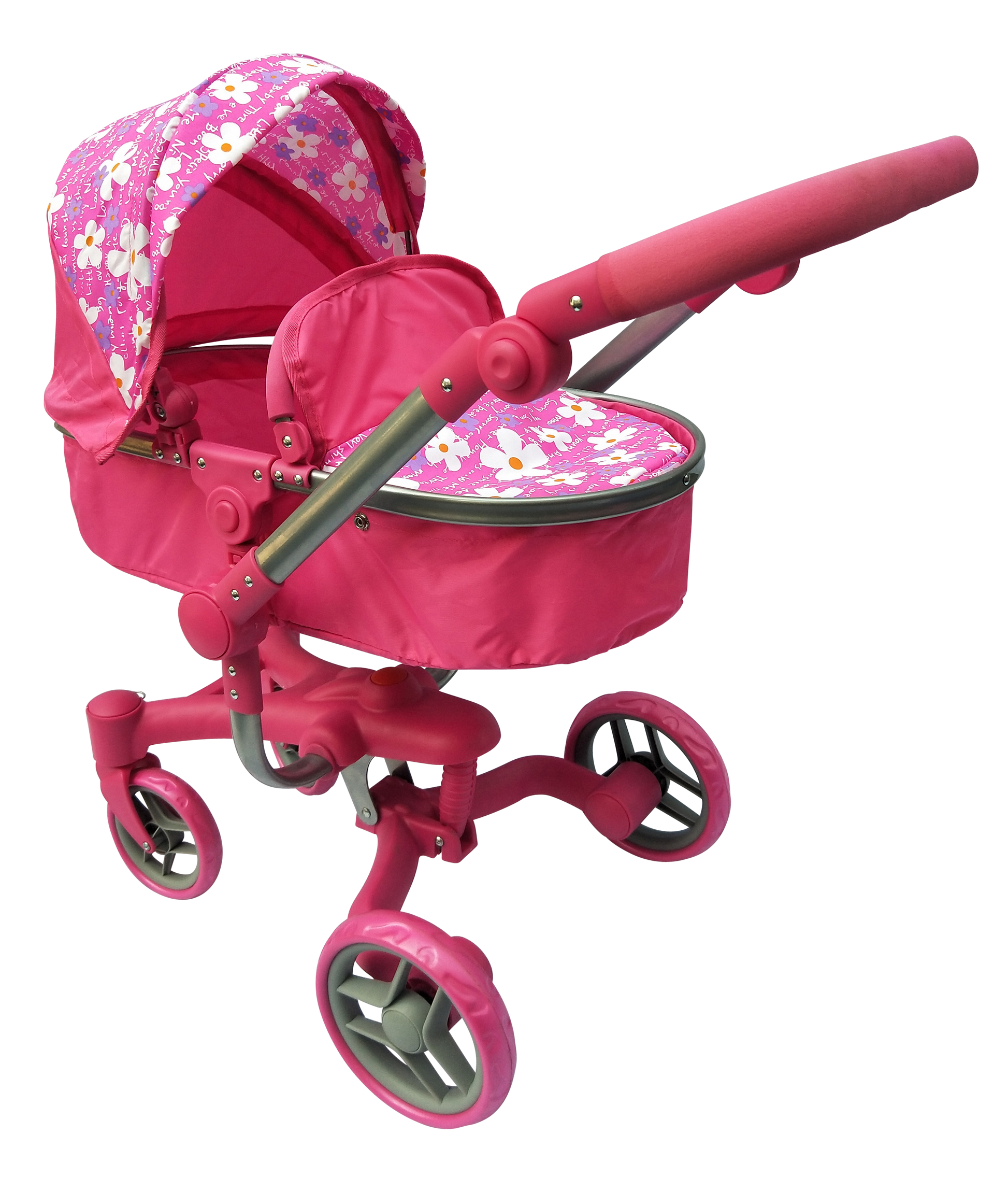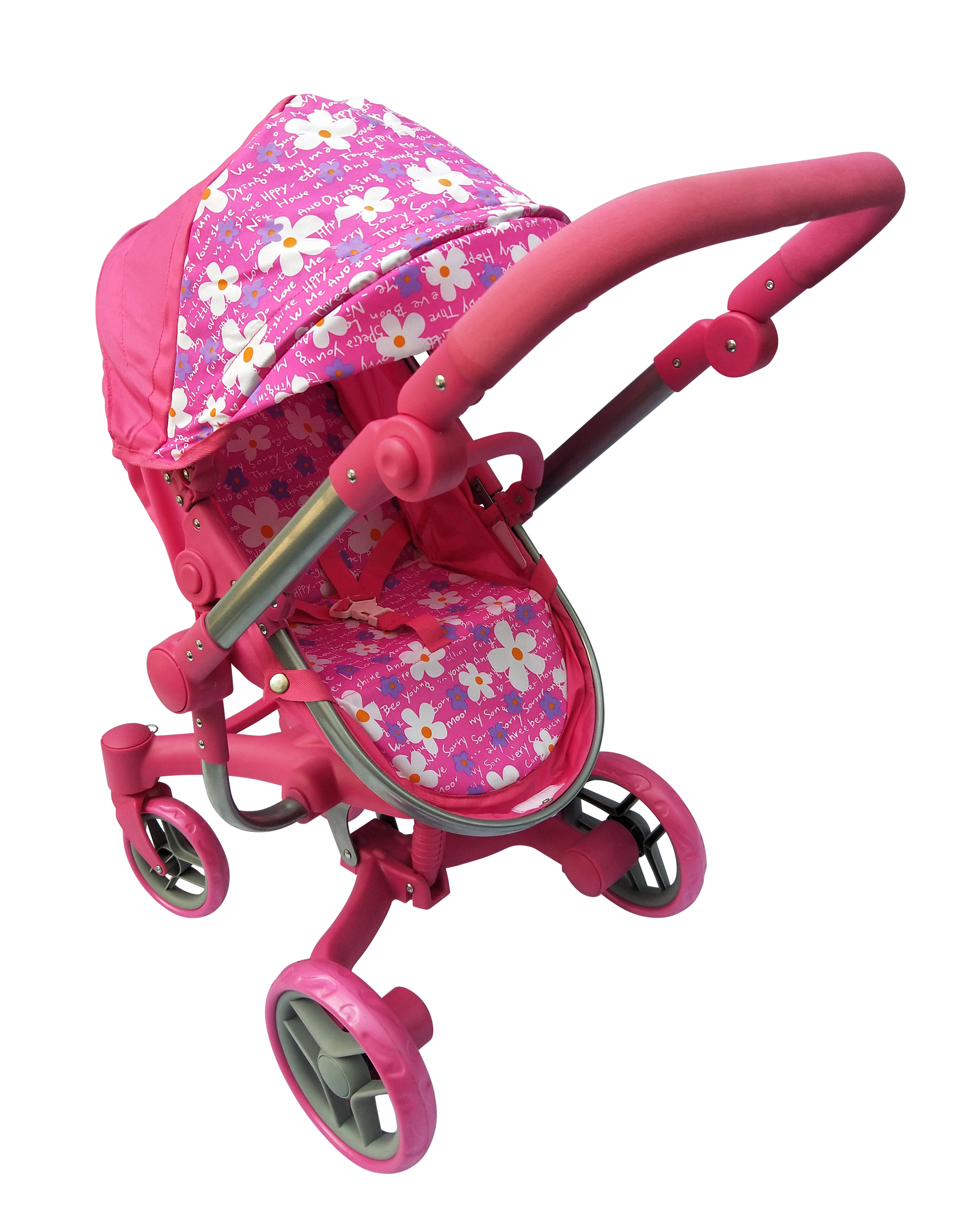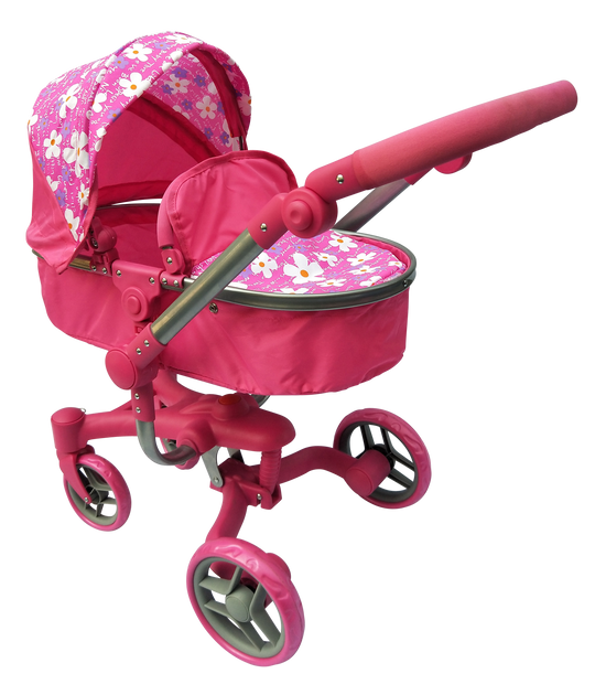Playworld Deluxe 2 in 1 Pram Pink with Flowers, perfect for roleplay with your little one.