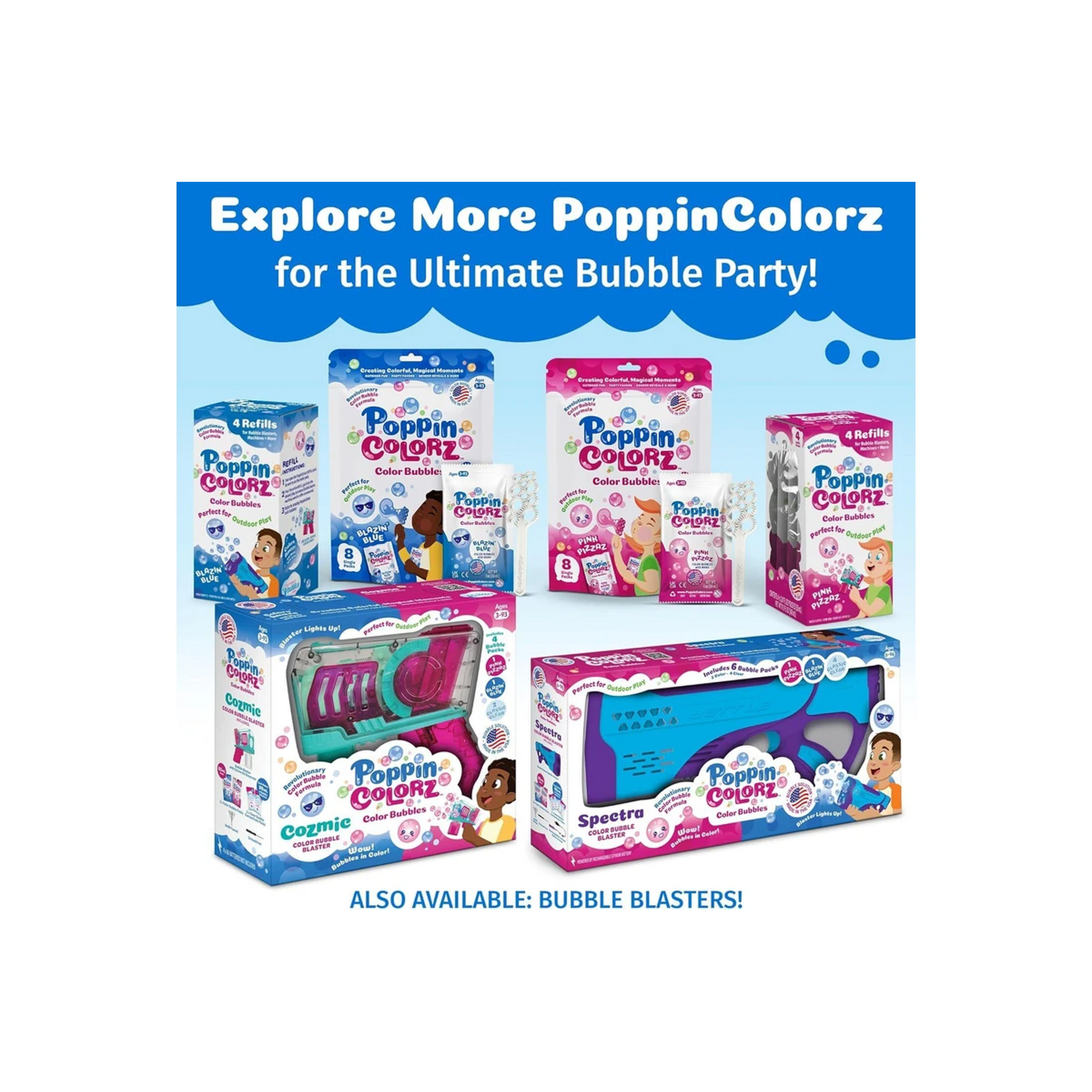 Proudly made in the USA, PoppinColorz bubbles boast a unique non-toxic formula perfected over years. Safe for kids aged 3 and up, these bubbles vanish magically with a simple rub or a wipe of clean water.