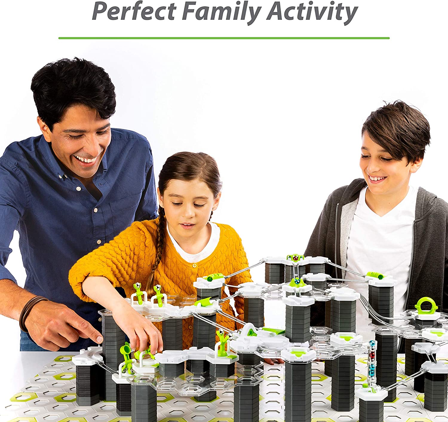 With GraviTrax you can explore gravity without getting bored, because the additional pieces allow you to expand your path to infinity. Make the marbles disappear and reappear! With these accessories you will create a surprise effect. Use the tunnels, tracks and base platforms together with the GraviTrax Starter-Set to further enrich your track and transmit more acceleration. You will succeed in not losing sight of the marble when