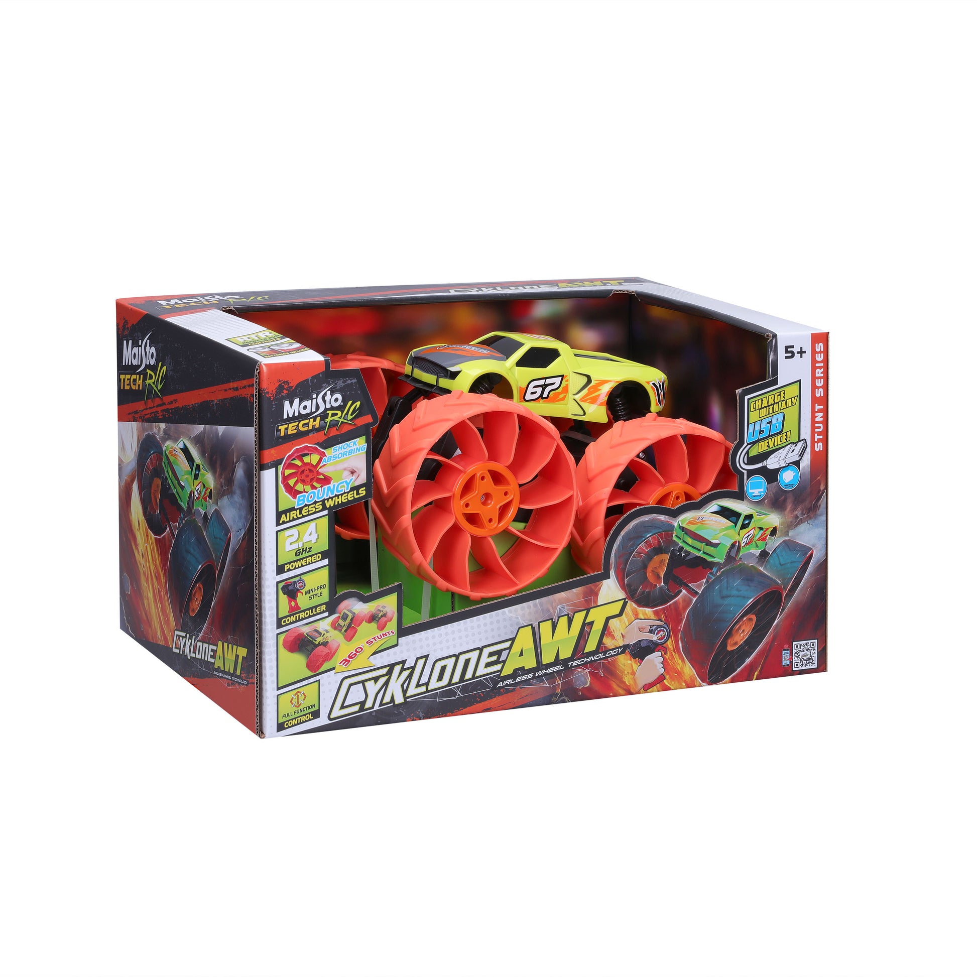 The Cyklone AWT is an incredibly fast off-road truck with extreme stunt capabilities thanks to its high torque and bouncy airless wheels! Perform insane stunts and jumps, including 360˚ spins and flips. Flat-free tires (Airless Wheel Technology) give it a unique, aggressive, and extremely fun look!
