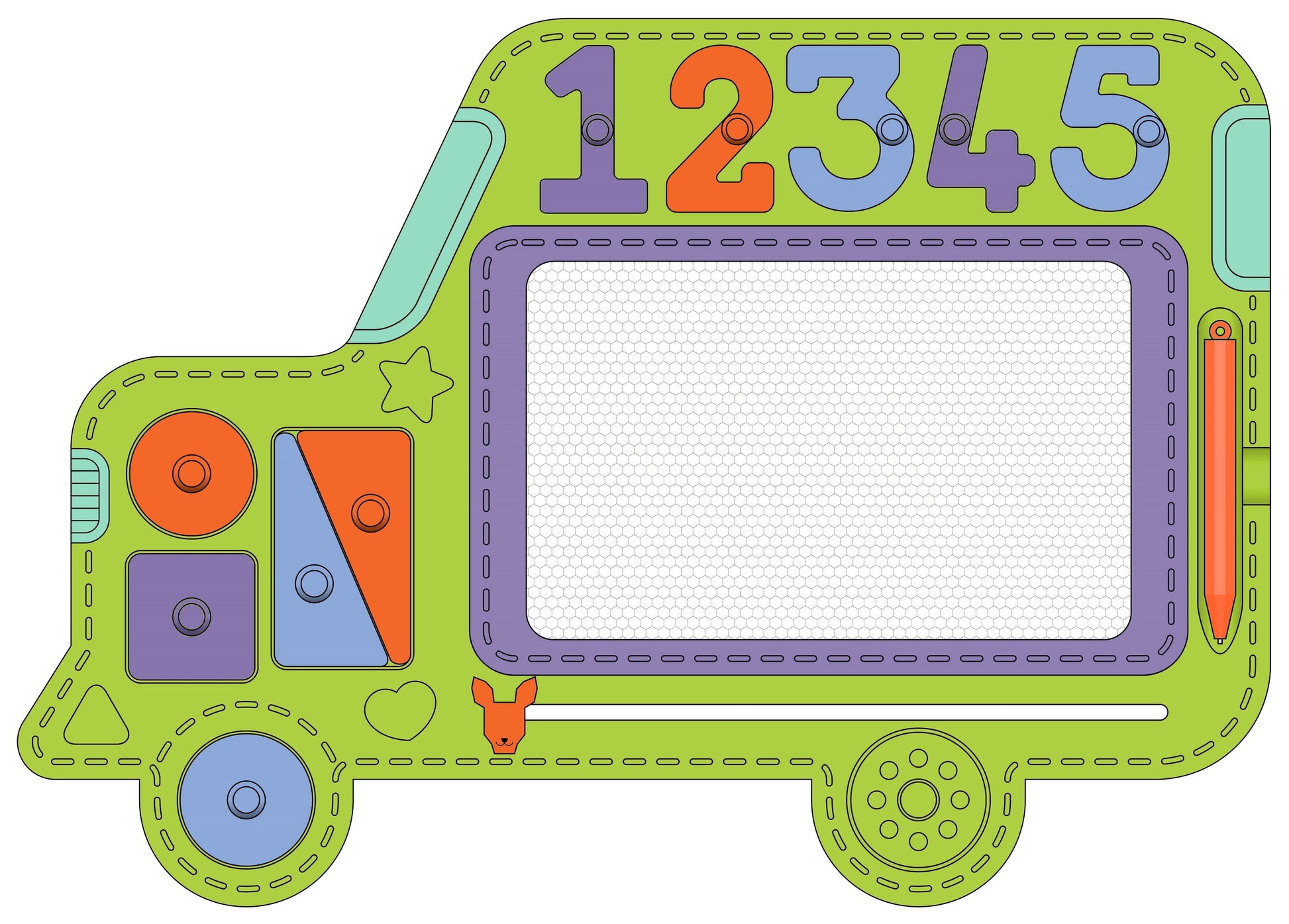 10 assorted stamps and numbers included, fully functional doodle board, easy to erase and restart drawing, all made out of Eco Wood.