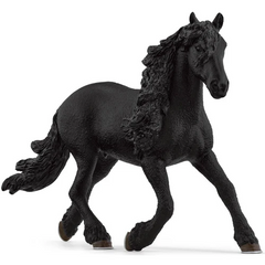 The Schleich Friesian Stallion figurine captures the elegance and power of this majestic breed. Known for their striking all-black coats and flowing manes and tails, Friesians are admired for their beauty and strength. This stallion figurine is sculpted in a dynamic running pose, with its mane and tail blowing in the breeze.
