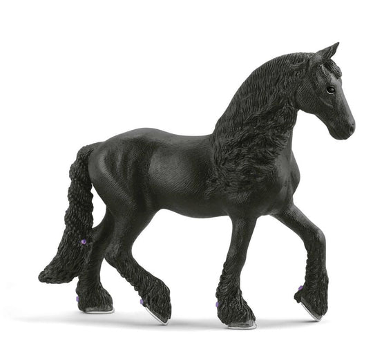 Frisians were named after their home, the Dutch Friesland, and are one of the oldest horse breeds in Europe. They have a characteristic black coloured coat, a magnificent mane and a pretty tail. Another feature of Frisians is the long hair on their legs. The Frisian mare by Schleich Horse Club has elaborate braiding on her fetlock, which makes her a unique collector's item. Dimensions: 4.96 x 1.33 x 4.33 inch (W x D x H)