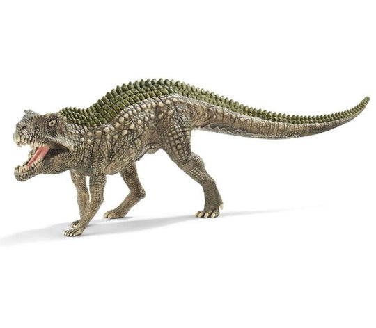 The postosuchus was an archosaur and thus a close relative of modern crocodiles. It had strikingly ossified skin and a long, narrow snout. It usually moved on four legs. Sometimes it stood on its hind legs so that it could hold prey with its claws. When the postosuchus from Schleich Dinosaurs opens its powerful, movable jaw the sharp, dagger-like teeth become visible. Dimensions 7.28 x 2 x 2.28 inch (W x D x H). 4+