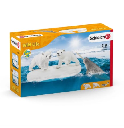 The big ice floe in the Schleich WILD LIFE Polar Playground is really wobbly. The two polar bears need to be careful they don’t fall in the water as they play!