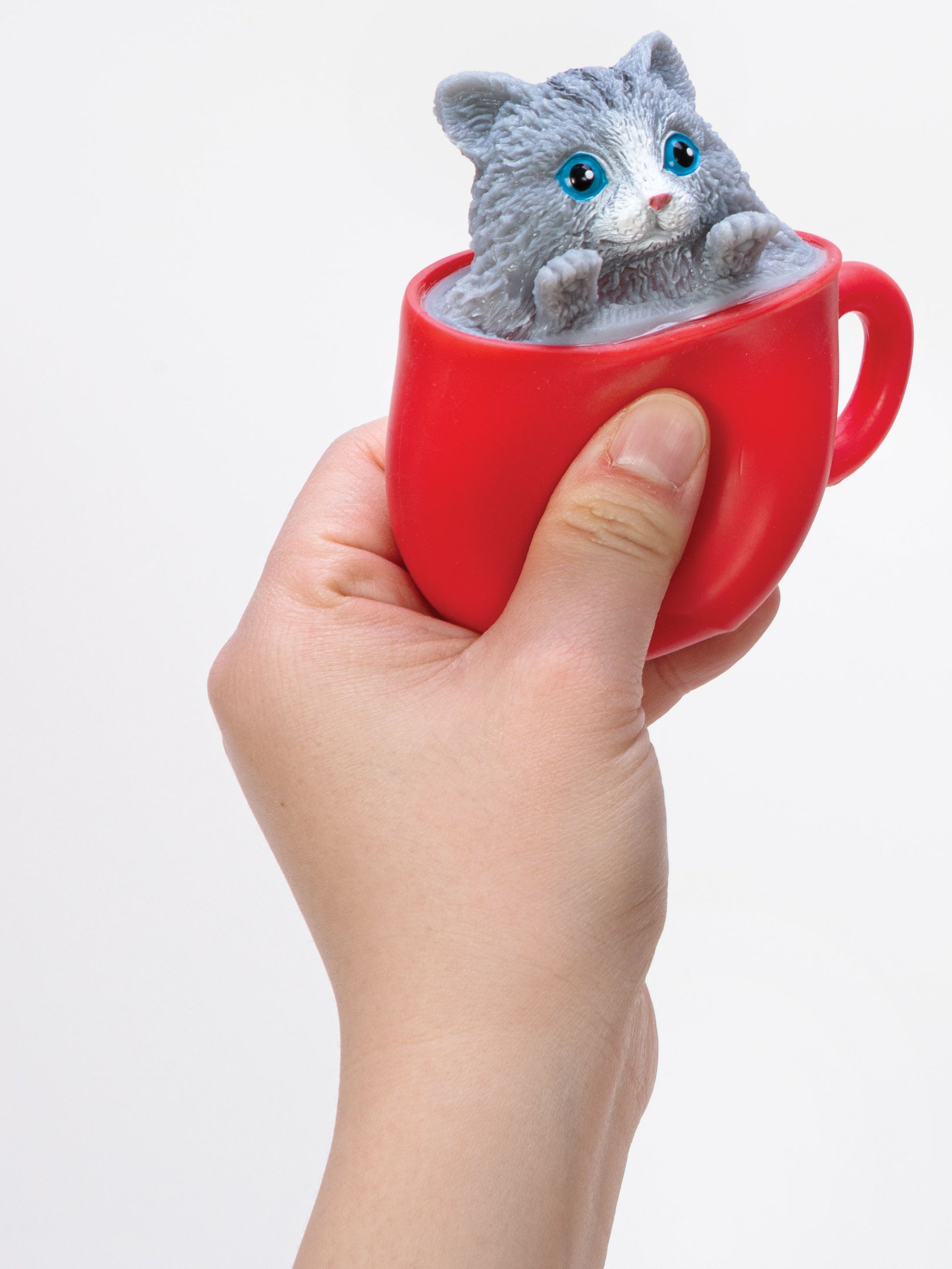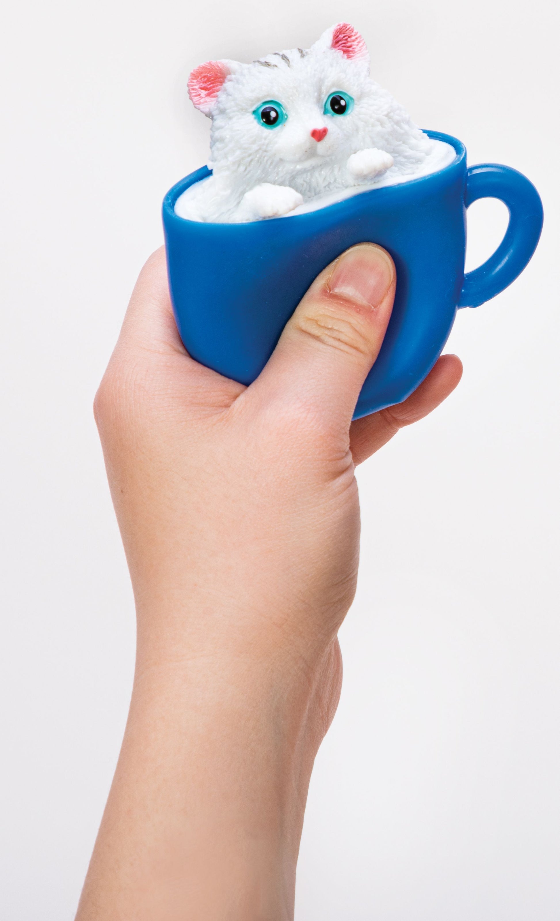 Pop-A-Chino is your new squishy, sophisticated companion! These espresso cups look like your favourite coffee drink, but give them a squeeze, and out comes an adorable little kitty cat! Who knew such a little cup could hold so much cuteness! Squishy, squeezable play Makes a great fidget toy Weight 0.15 Lb Dimensions 2.5 × 2.5 × 2.5 ecommended for children from ages 3 years old up. Available in 4 assorted breed styles and two cup colors. Each sold separately. Collect them all! Your morning cup got a whole lot cuter! Pop-a-chino Kitties! This "pick-me-up" pops up with adorable mini kittens. Just squeeze these teeny cups and out pops a friendly little feline. Collect all 4 flavors including Pawspresso, Meow-Mocha, Purr-Latte, and Fluffachino. Get your fix of this cup full of cute!
