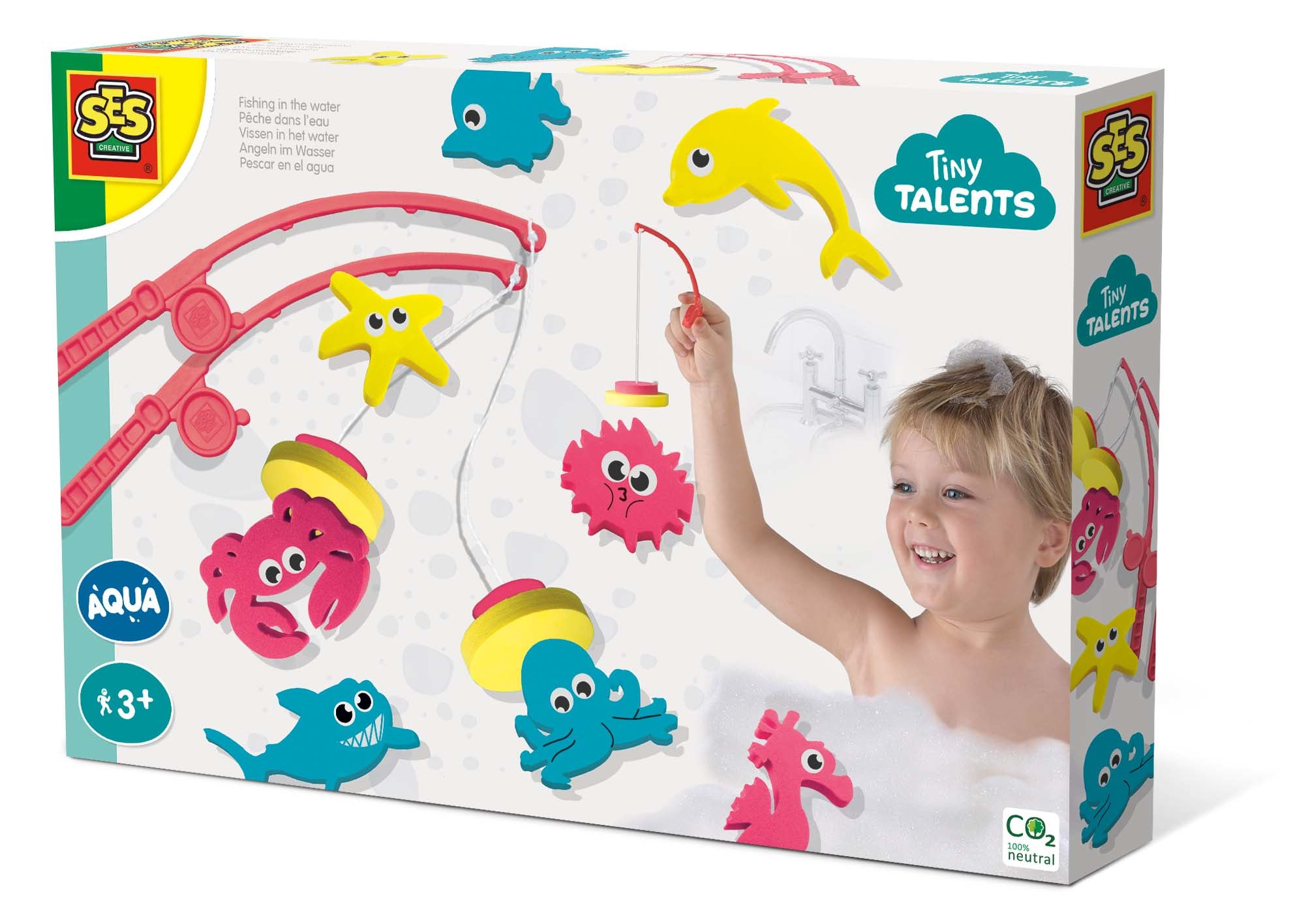 Who will catch the most or the most extraordinary fish from beneath the bath bubbles?