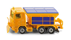 Truck with winter service equipment on 3-axle chassis. Drivers cabin produced in die-cast metal. Spreader made of plastic and snow plate at the front. Smooth-running wheels.