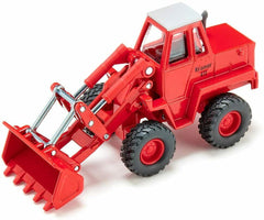 A wheel loader can be used in many ways: moving soil. clearing debris. transporting pipes or stone slabs. On the construction site, for excavation, or on the farm - this compact construction machine is an indispensable helper in many areas. One of the leading manufacturers in this field is the Kramer brand. Founderd about 100 years ago in a small town in Swabia, near Lake Constance, Kramer produces extremely manoeuvrable and highly efficient wheel loaders that are also suitable for off-road use. This also includes the historic model 411, which has now become a real collector's item as a classic old-timer. As a Siku model, the historic Kramer wheel loader is equipped with a metal body in red and fitted with true-to-original rims. The loading arm and shovel can move. The four tires with a coarse construction profile make this loader suitable for any kind of application.