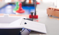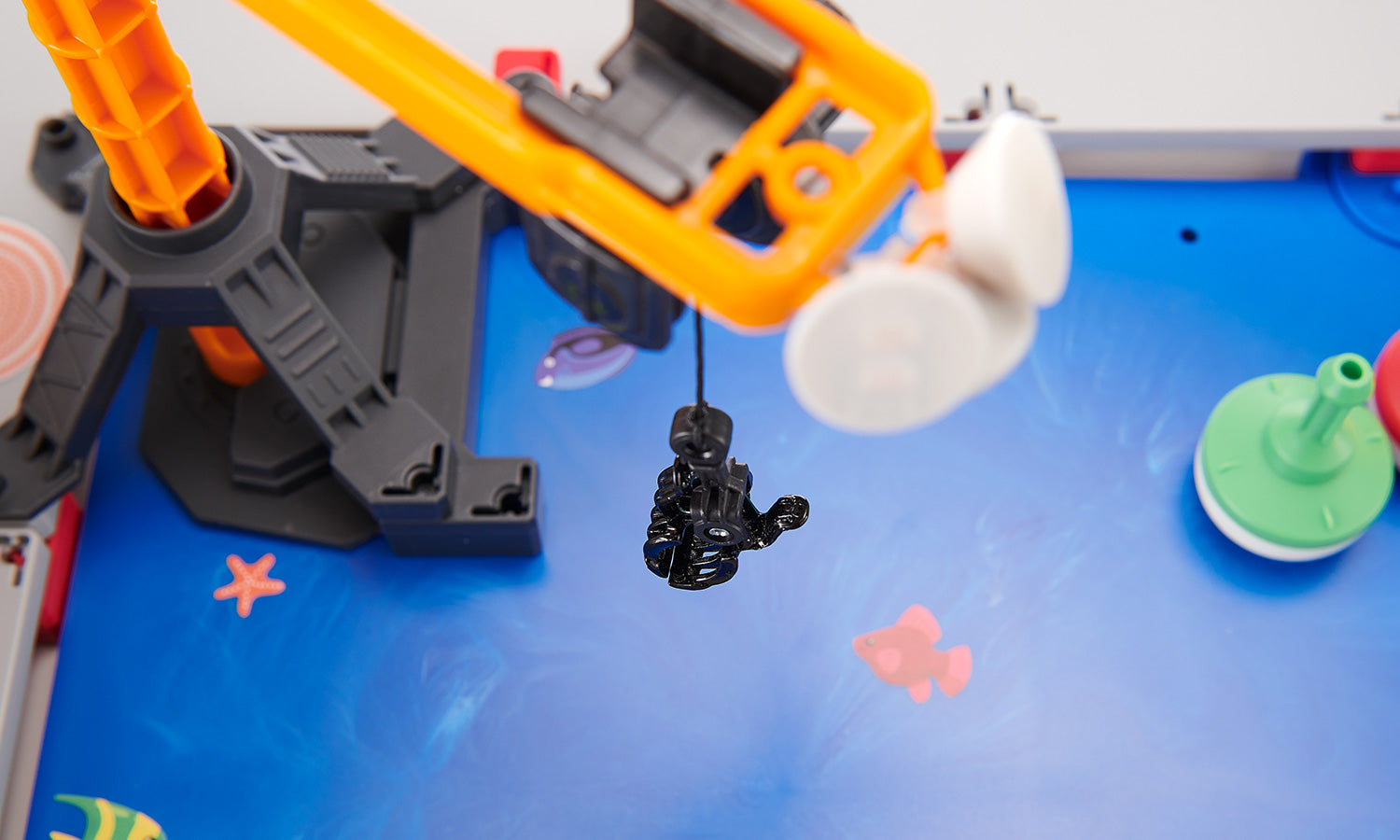There is always work to be done at the SIKUWORLD landing stage. With its individual parts, the landing stage can be built in multiple ways, and customised using stickers. Boats can be launched into the water and drawn out via the ramp. The muffled boom of the ship’s horn signals the end of the lunch break for the dockworkers. The fish and chips at the snack stall are swallowed quickly, and the workboat is already being moored. It takes just a few skilled actions to securely tie the boat to the bitts on the quay wall. The gantry crane with the travelling trolley starts to move. The cargo on the workboat has to be discharged, as the dockworkers call it, because the captain wants to cast off again. The SIKUWORLD landing stage consists of the workboat, buoys, two flags, snack stall, and a landing stage with entries and exits, two plastic panels in a blue design, crane, and crates. The crates can be opened, filled, and emptied. The SIKUWORLD landing stage can be played with on its own, but it is also the perfect addition to the SIKUWORLD Water World and the SIKUWORLD container ship.
