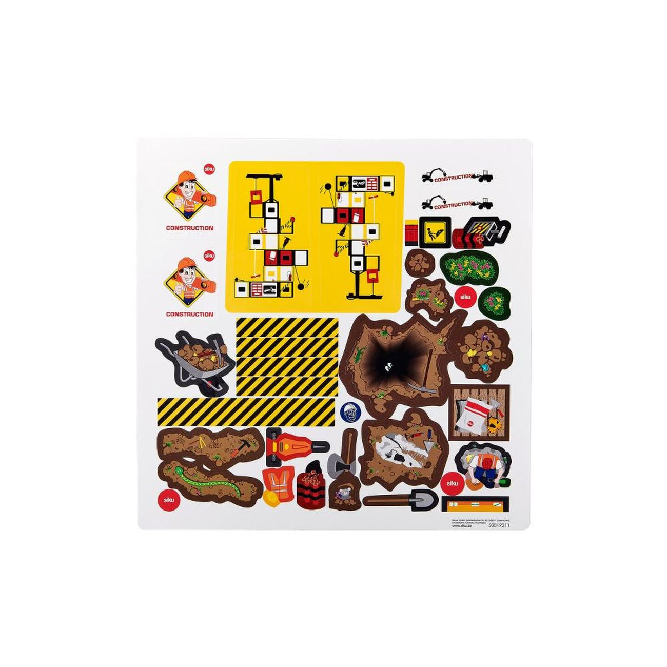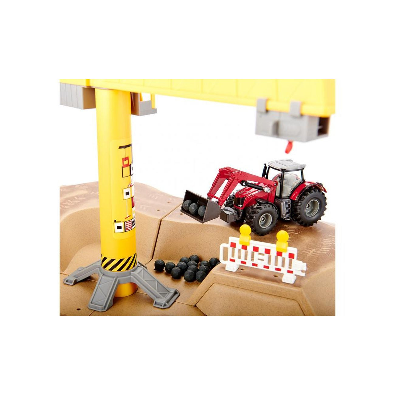 Children have a huge fascination for excavation pits. Earth, gravel, sand, and mud, large machines and loads. With the new SIKUWORLD set, the playroom becomes a major construction site. The set consists of four new ground panels, whose colour theme and form create an excavation pit, but are also compatible with the other panels in the SIKUWORLD. The site hut has been erected, the barriers set up, and the large construction site crane is in place. The construction work can start: The boom pivots, and the mobile trolley can be used to pick up the construction materials on the hook, and to set them down on the conveyor belt and sorting unit. The conveyor belt can be moved using a rotating knob. This conveys the waste material to the sorting unit. This sorts the materials for removal for re-use onsite. The versatile tractor included in the set has a trailer coupling for manoeuvring the machines on the construction site. Product dimensions w x d x h (mm)540x540x235.