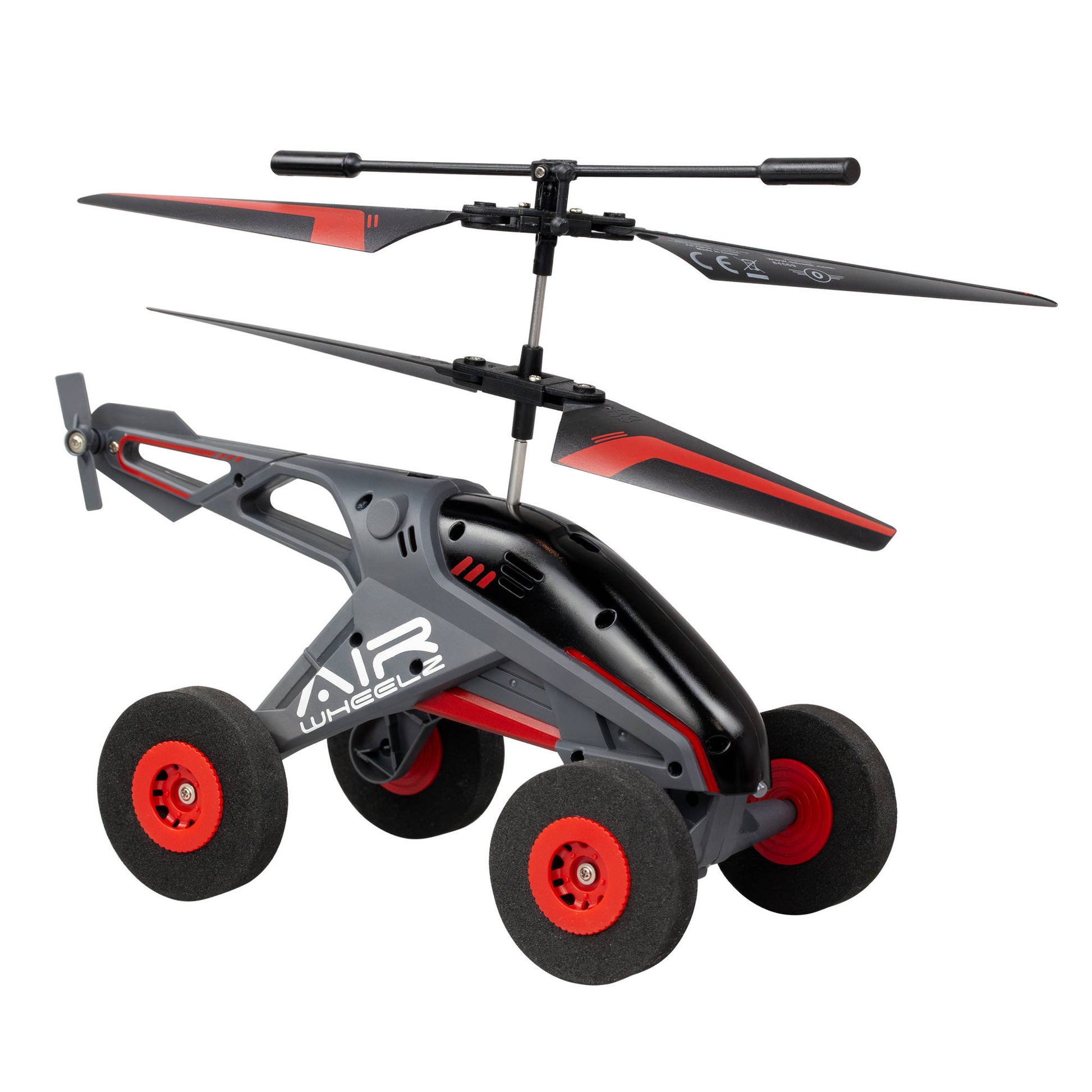 Introducing Air Wheelz II — a 2-Channel Helicopter that can drive on land and fly in the air. With a simple one-press switch between Fly Mode and Land Mode, it's easy to control and full of excitement. Equipped with an LED headlight, it's perfect for exploring even in dark areas.
