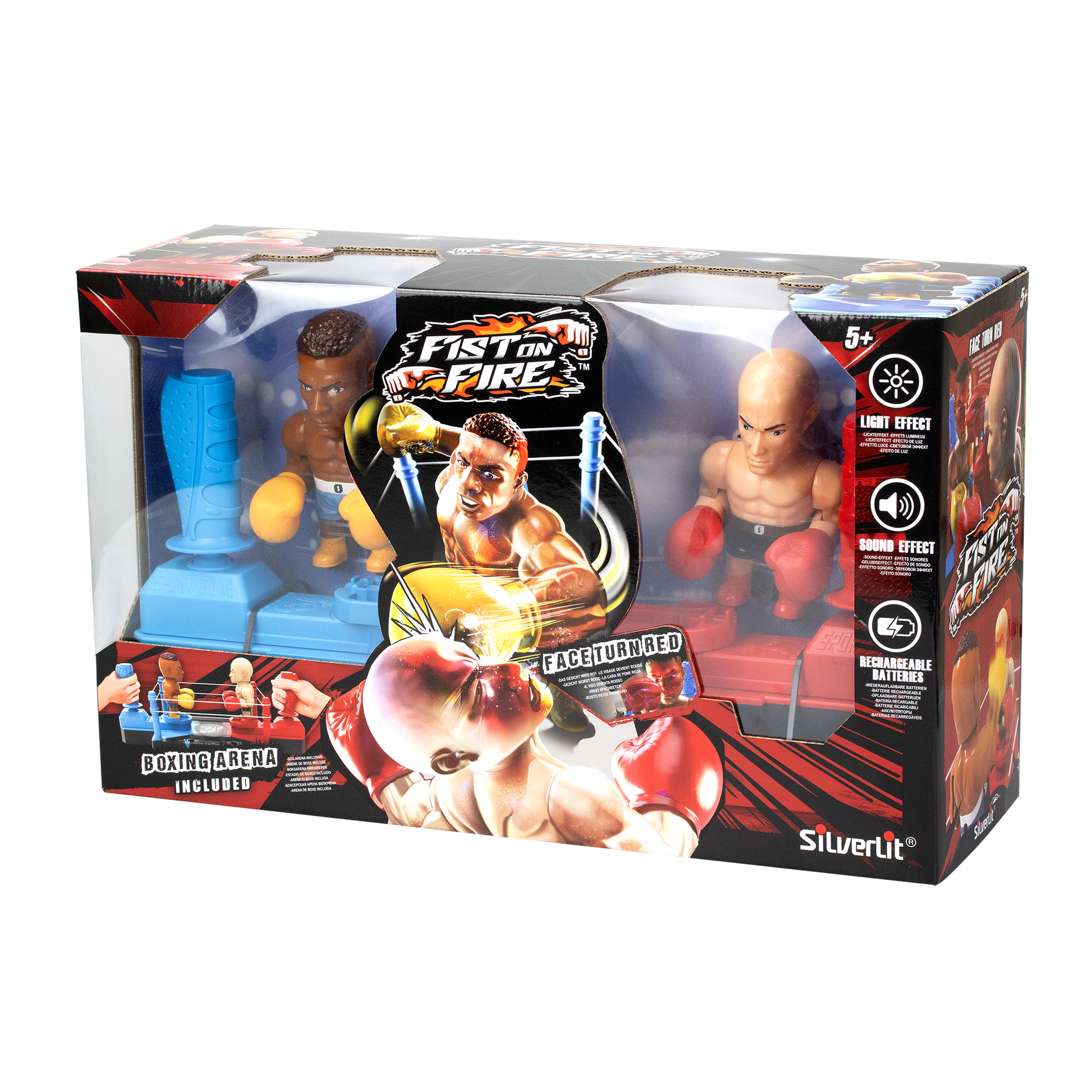 Get ready for action with FIST ON FIRE! Control 2 boxer figurines using joysticks to throw punches and move. Land 4 hits to light up your opponent’s face and win as they lean back in defeat. Features awesome sound effects and USB-C rechargeable battery for endless fun!