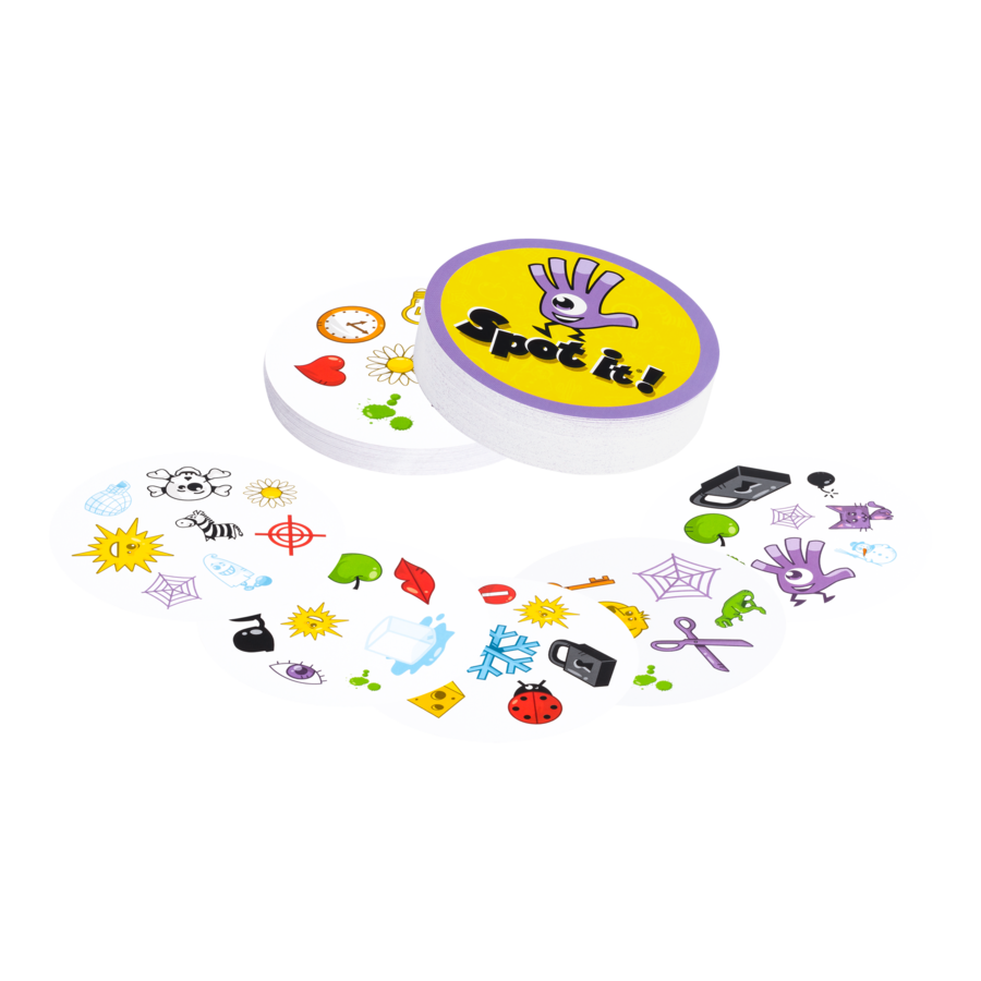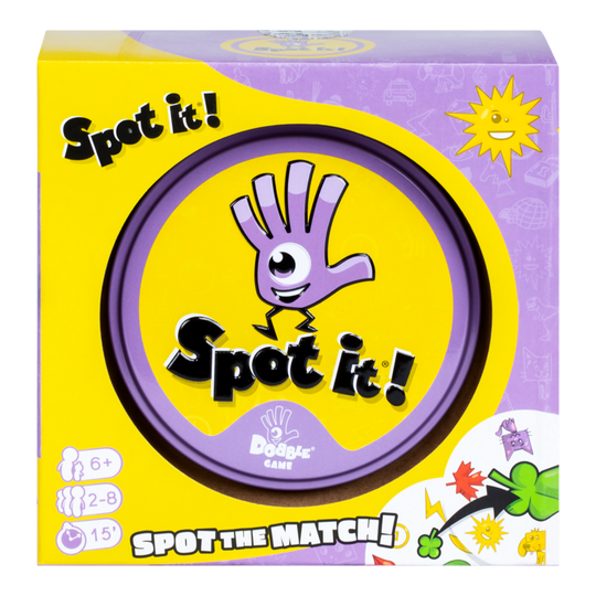 55 cards, 8 symbols and always only one shared symbol between any two cards! Race your friends in this fast paced game, spot the match first and test your reflexes. Cards come in a keep safe Spot It tin.