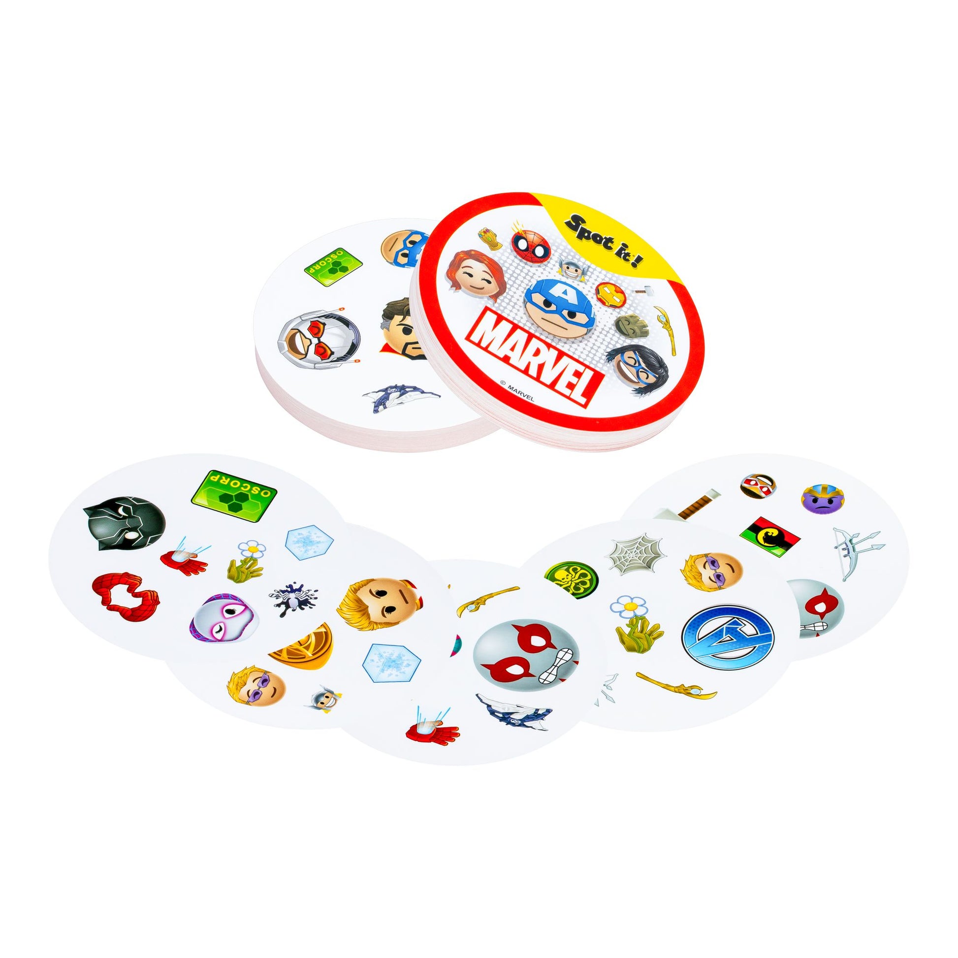 Now children can spot their favourite Marvel characters in this new release of this special Marvel edition of the classic "Spot It" game! This fast-paced fun family game of observation and quick reflexes is ideal for players aged 6 and up.
