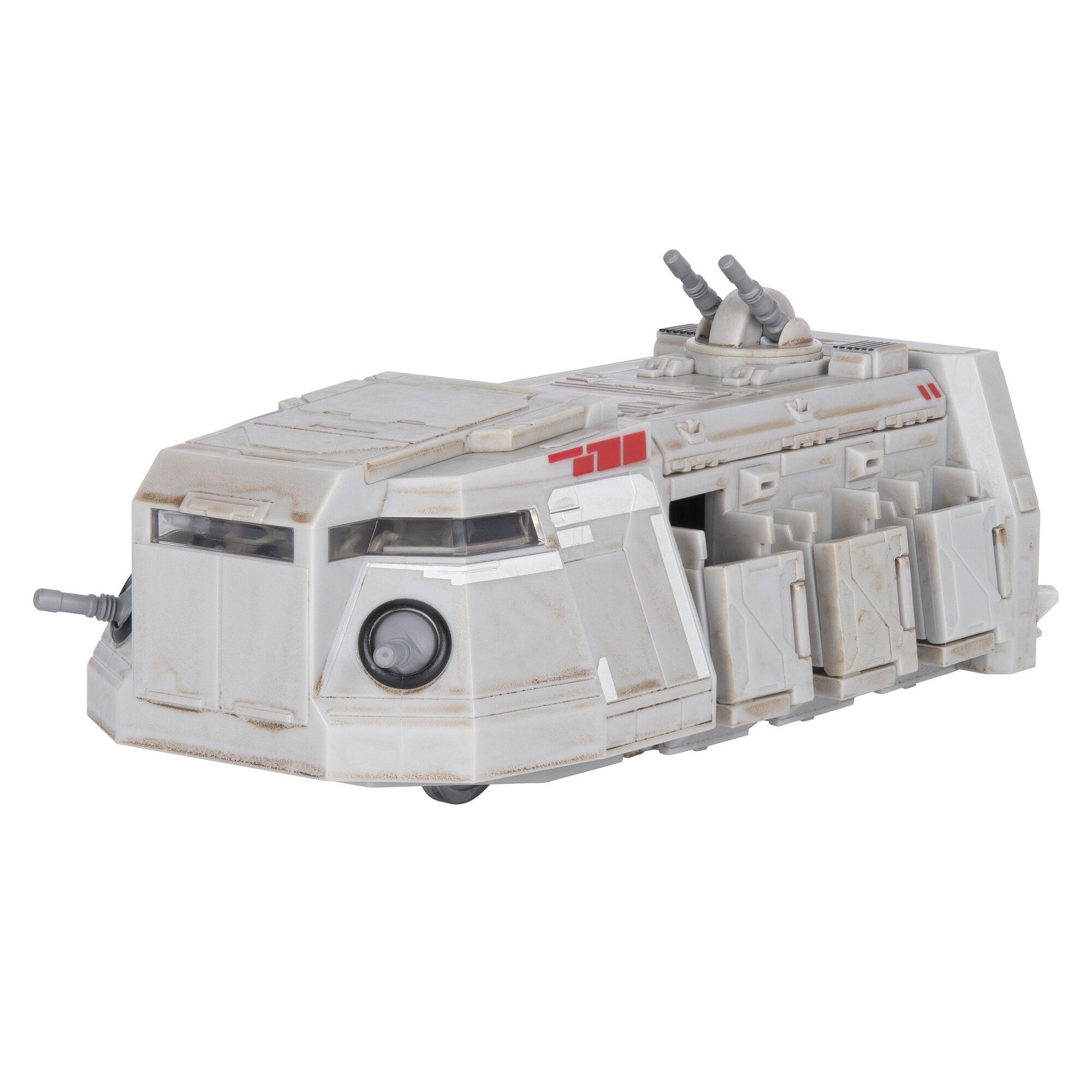 Reinforce the battlefront with positionable chin and rear cannons, rolling wheels, six troop deployment doors and an opening cockpit and troop bay roof.