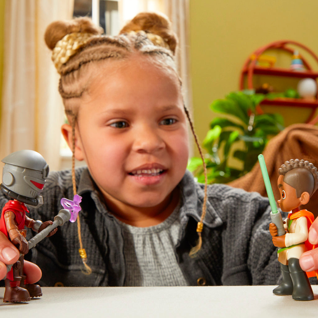 Get ready for adventures that are out of this world with the Star Wars Pop-Up Lightsaber Duel. This multipack of 2 small action figures features 4-inch scale versions of Kai Brightstar and Taborr -- popular characters from the Disney+ animated series, Young Jedi Adventures. The Kai figure harnesses his Force training with a pop-up Lightsaber function, activated by the button on his belt.