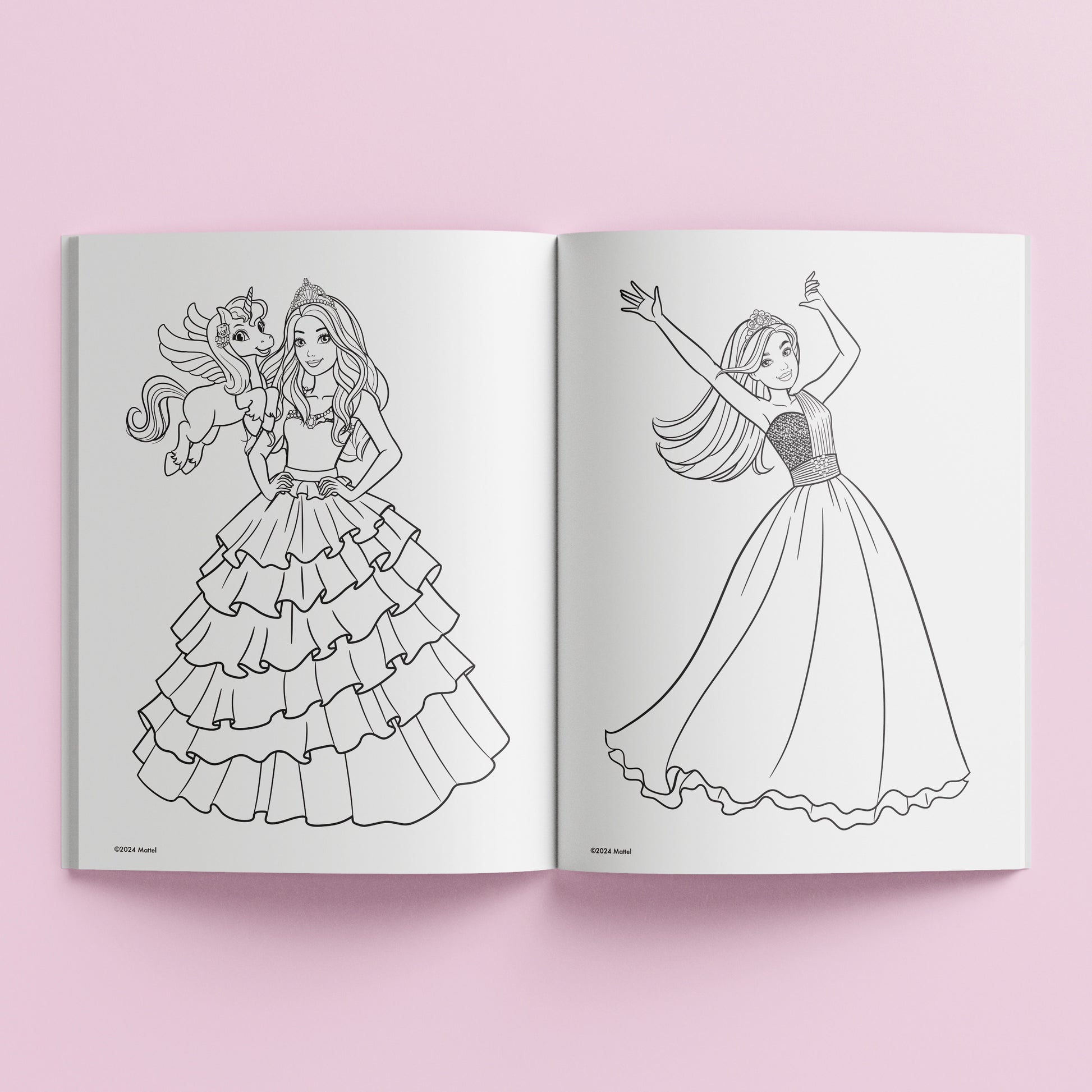 Inside this super chic kit, you'll discover a kaleidoscope of colouring magic just waiting to be unleashed. Dive into a whirlwind of fun with Barbie-themed colouring pages and decorate Barbie's world with dazzling stickers that sparkle and shine!