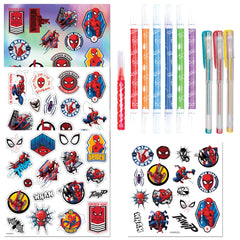 Get ready for a kaleidoscope of webtastic creativity with the Super Kaleidoscope Spider-Man Colouring & Activity Kit! Dive into a world of dazzling designs in the 64-page book that are waiting to be brought to life with the 6 double-ended markers, 3 gel pens, and 1 glitter marker! Plus, unleash your style with a cool tattoo sheet and decorate your space with a stunning A3 poster. With 2 sticker sheets and 1 foil sticker sheet, this kit ensures it’s always a Spidey party!
