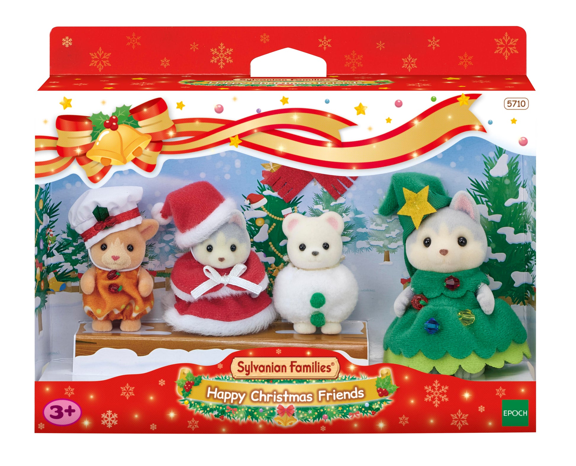 Inside the Sylvanian Families Happy Christmas Friends Set you get Pauline and her sister Linnea Husky, the reindeer Eve Snowdrift, and the baby polar bear Yana Polar, all in their best seasonal looks: Pauline as a Christmas tree, baby Linnea as Santa Claus, Eve as a gingerbread man, and Yana as a snowman. Alone or combined with any other Sylvanian Families set you might have, they blend right in with your home's holiday atmosphere. You can even use them as Christmas tree decorations!