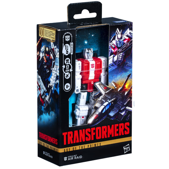 Unite your favourite characters from across the world of Transformers robots into your collection with the Transformers Age of the Primes Deluxe Class action figure! This 5.5-inch Aerialbot Air Raid action figure converts between robot and jet modes in 17 steps.