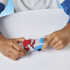 Match, twist, combine, and repeat with Transformers Swapticons! The set comes with 2 stylized small action figures, Optimus Prime and Ultra Magnus. Twist them together into truck mode, then twist again to release! This Transformers toy set is perfect for fidgety fun, and since each Transformers action figure is just 2 inches (5 cm) tall, they also make awesome travel toys. Look for more Swapticons action figure sets (each sold separately, subject to availability) and marvel at the imagination possibilities! Twist together 2 Autobots or 2 Decepticons and imagine a powered-up hero or villain alt mode, or mix them up for super Cybertronian chaos! These interactive toys for kids make fun stocking stuffers, Easter basket stuffers, or small gifts for boys and girls ages 5 and up.