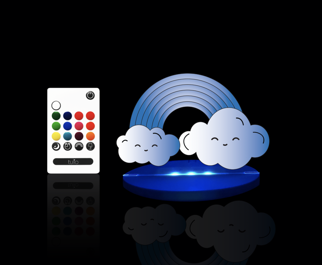 ?Let your world shine even brighter with Tulio Dream Lights. These compact LED night lights come with a handy remote control that allows you to choose from 12 vibrant colours and switch between four different setting: Sleep, Timer, Rainbow and Lamp. The adorable designs make Tulio Dream Lights fun for kids of all ages, while the remote functions allow parents to control the lighting without disturbing sleeping babies and children.