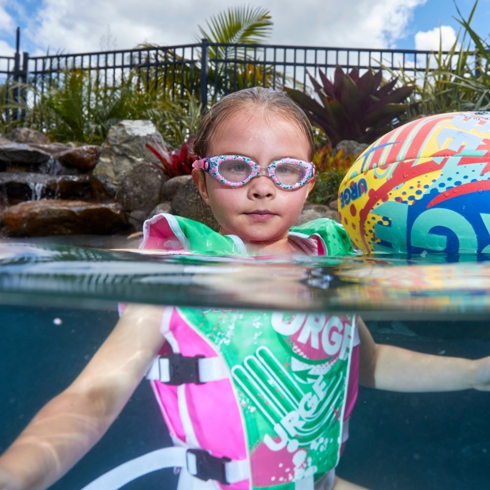The URGE Swim Vest is a fully adjustable child buoyancy aid. It allows for unrestricted movement as kids learn to swim.