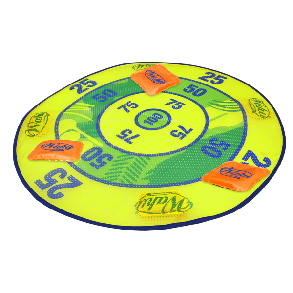 below sea-level! It's a game of darts you can play in the pool! Drop the darts and then dive down to see how you scored. With funky bright colours, everyone will want to play. Includes the dark mat, six dive darts and a handy carry bag for storage.