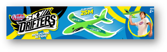 The Wahu Sky Drifter glider is a large, foam plane that has the ability to fly over 25m. No batteries are needed to see this awesome glider soar into the sky and beyond! The Sky Drifter has a wingspan of 48cm, a nose to tail length of 48cm and is easy to assemble.