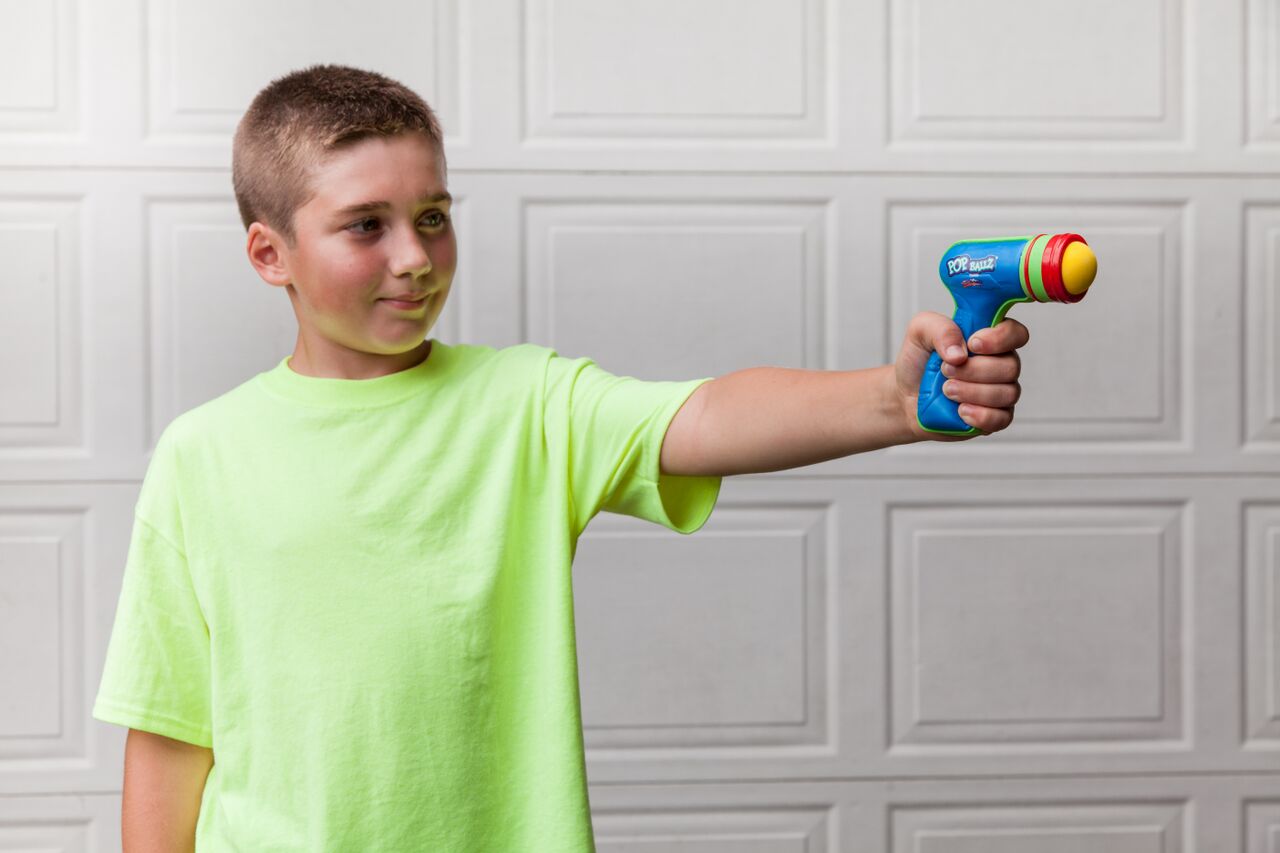 Includes: Pop Ballz gun, 3 x colourful soft foam balls
