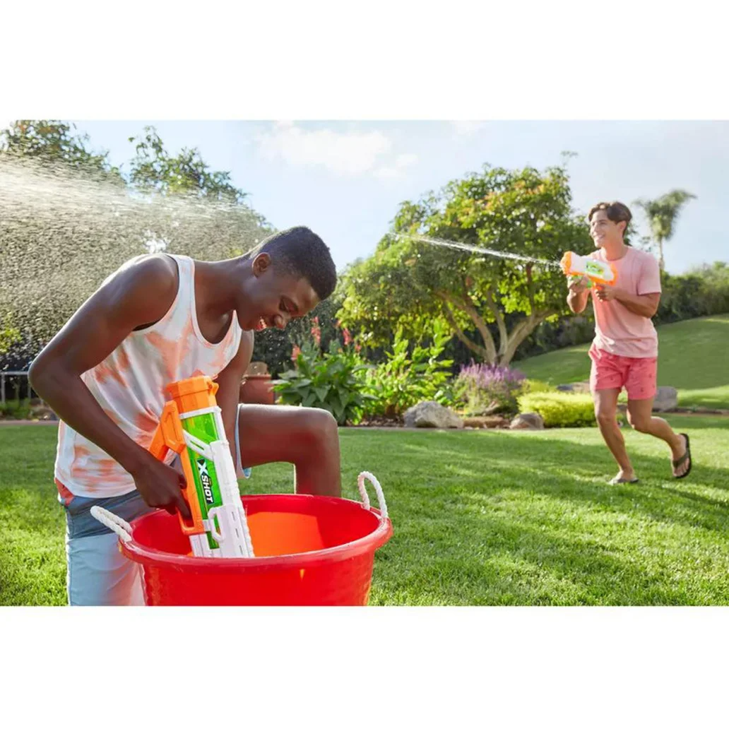 X-Shot Fast-Fill allows you to refill your blaster in 1 second and get back to the water blasting action long before your opponents. Just dunk, fill and close with rapid sealing technology. It shoots up to 34 feet /10 meters! and you can fill it anywhere. Because a Fast-Fill is everything. Up Your Game!