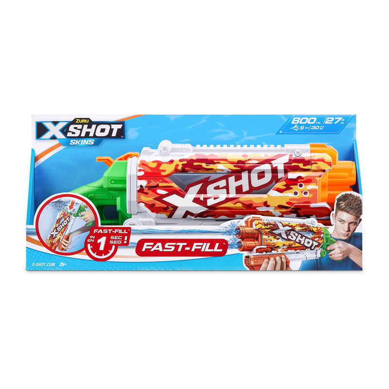 Make Summer your own with the New X-Shot Water Fast Fill Skins range! X-Shot Fast-Fill Pump Action allows you to refill your blaster in 1 second and get back to the water blasting action long before your opponents.