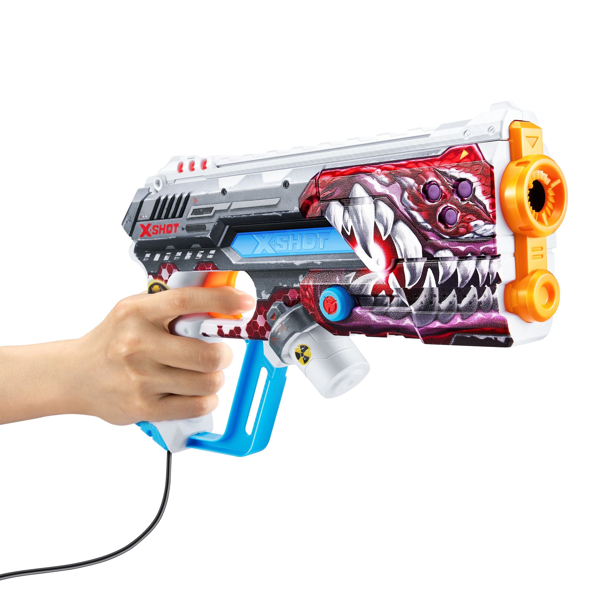 The X-Shot Skins Laser 360° brings the ultimate laser-tag experience to you and next level blasting fun. Players can team up or face-off one to one. Using multiple sensors integrated in the headset creates a 360° infrared signal enabling you to tag them from any direction. Ready, aim, tag!